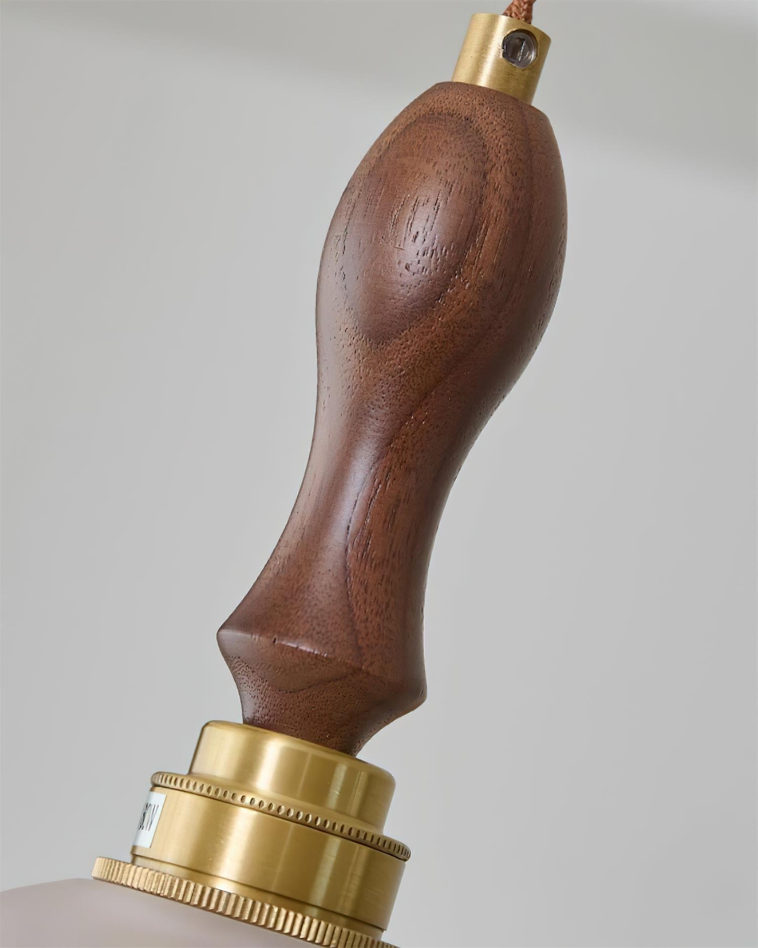 A graceful tribute to vintage glass artistry, the Brielle Pendant Lamp infuses any room with poetic charm. The hand-blown shade transitions from delicately frosted glass to intricate embossed patterns, finishing with a scalloped edge in your choice of crimson red, emerald green, or classic clear. The wooden spindle detail adds warmth and contrast, while the brass accents provide a refined finish.