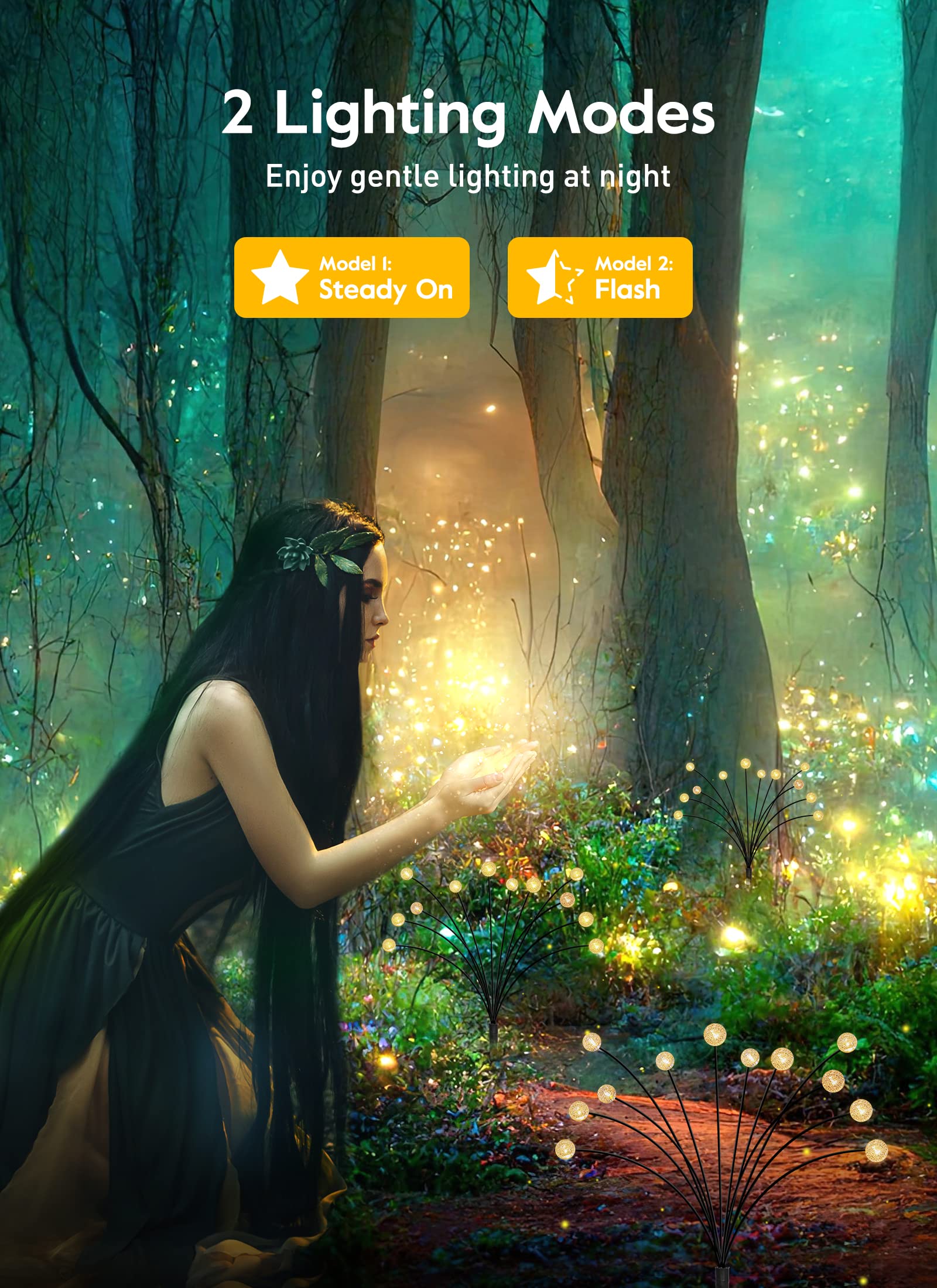 - Magical Swirling Lights: Experience the charm of solar lights gracefully swaying in the breeze, reminiscent of fireflies' dance. Designed with a more flexible stem, these lights move easily with the wind, creating a captivating atmosphere in your garden.