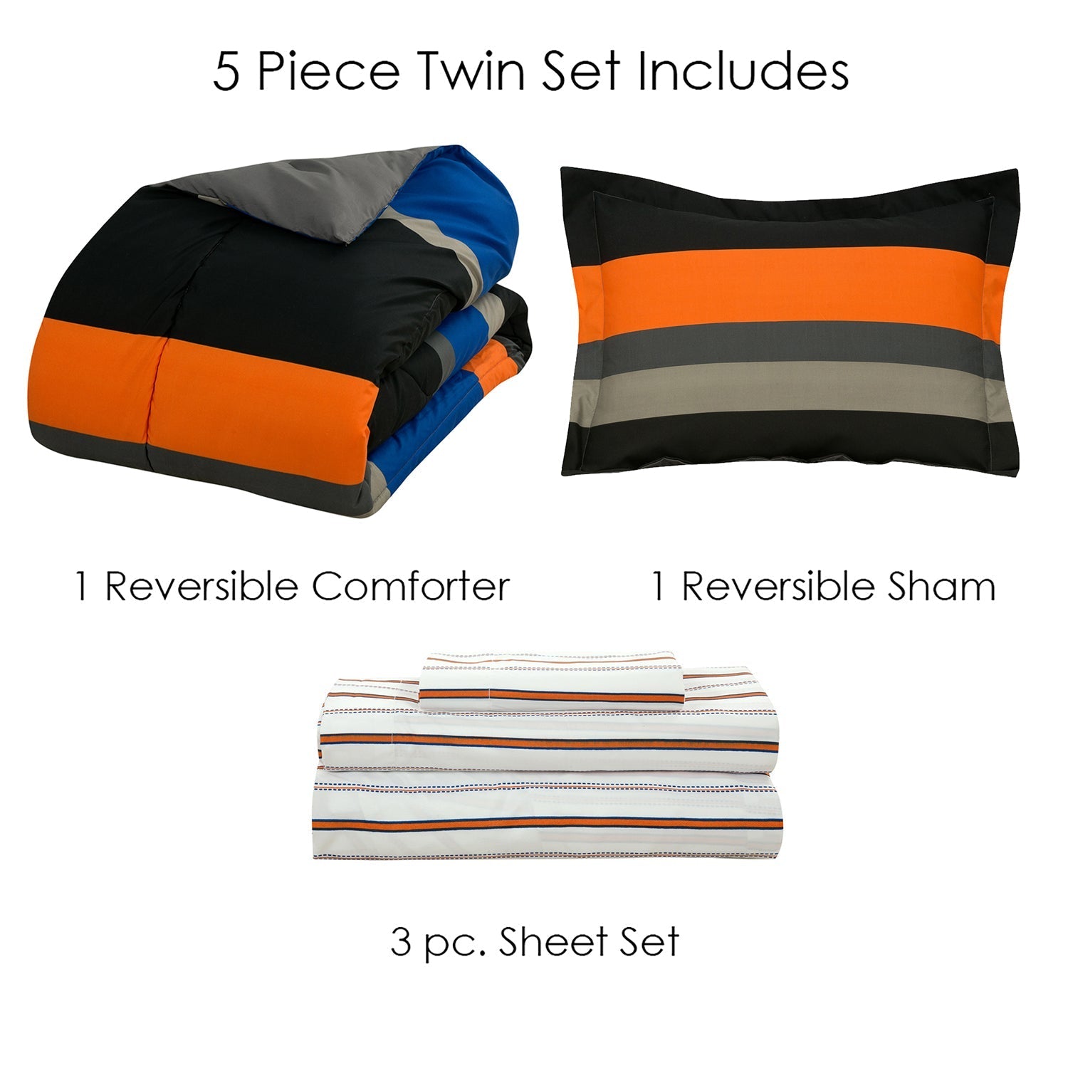 This classic Rugby Stripe bedding set features clean lines and vibrant colors that are ideal for dorm rooms, teen bedrooms, and more. The reversible duvet cover and pillowcases allow you to easily transform your bed's appearance at any time. Made from ultra-soft brushed microfiber, this bedding is both durable and easy to maintain. The Rugby Stripe bedding set comes with a duvet, pillowcase, a complete sheet set, and is available in a variety of bold college-inspired colors.