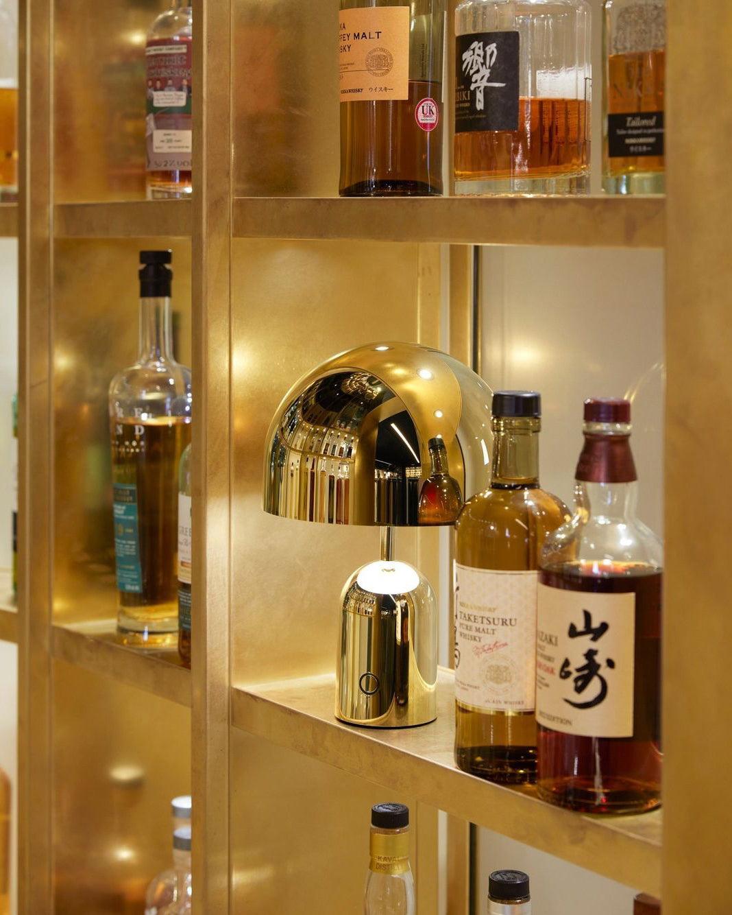 The Brulee portable table lamp merges modern design with luxurious details through its smooth golden curves and shiny surface. The base and the shade of the lamp boast a high-gloss finish, reflecting a warm and gentle light that adds a touch of brilliance to any room. Its rounded shade is designed to optimize light distribution, creating a glare-free lighting environment.