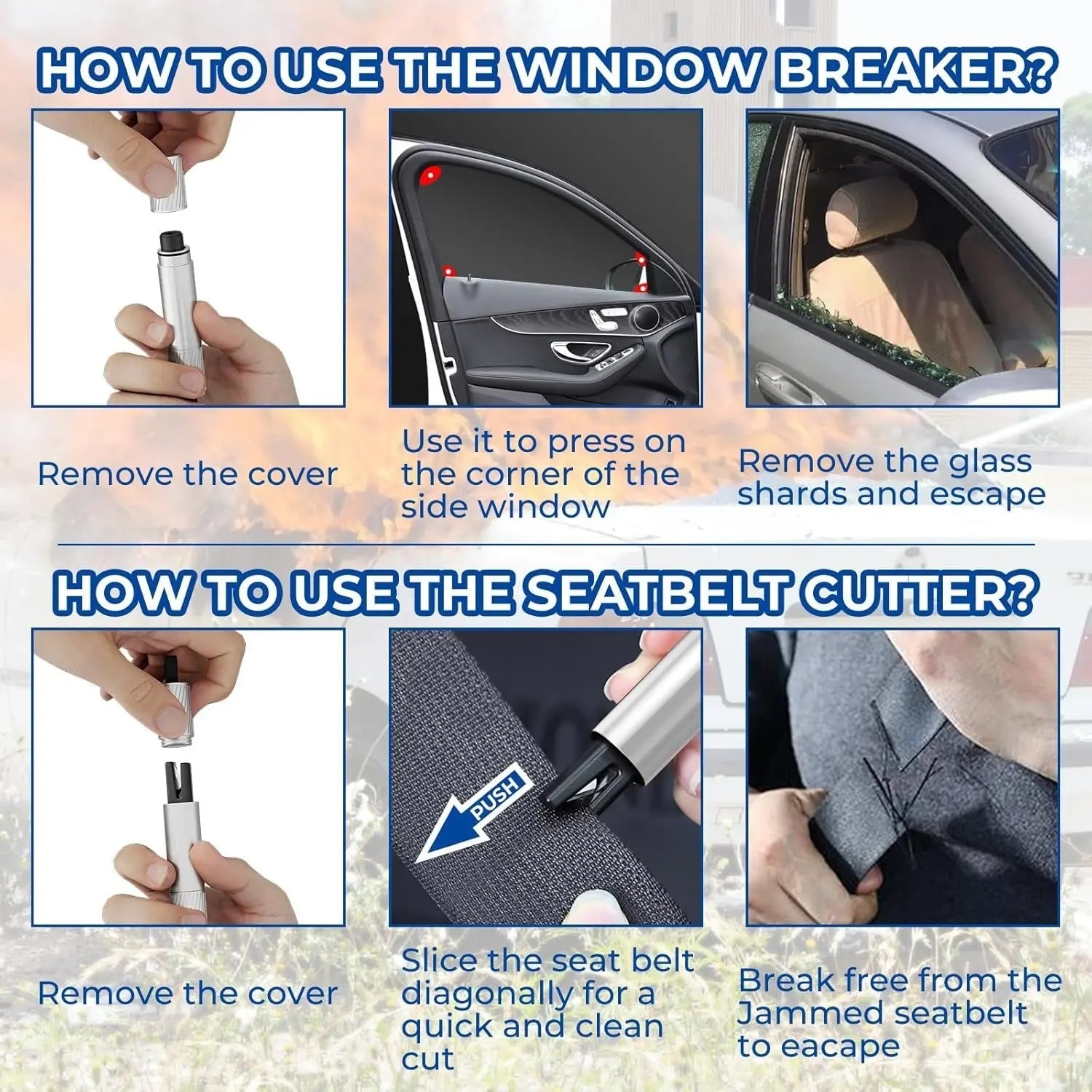 Visualize having a device that enables you to swiftly exit your vehicle during an emergency. This portable assistant easily breaks tough automotive glass and cuts through seatbelts rapidly. Engineered with robust tungsten steel and a strong high-pressure spring, it creates an impactful force of 196 Newtons to break the glass almost instantly. Its streamlined design measuring 9.1 cm makes it perfect for attaching to your keychain or keeping in your car – crucial for when every second is critical!