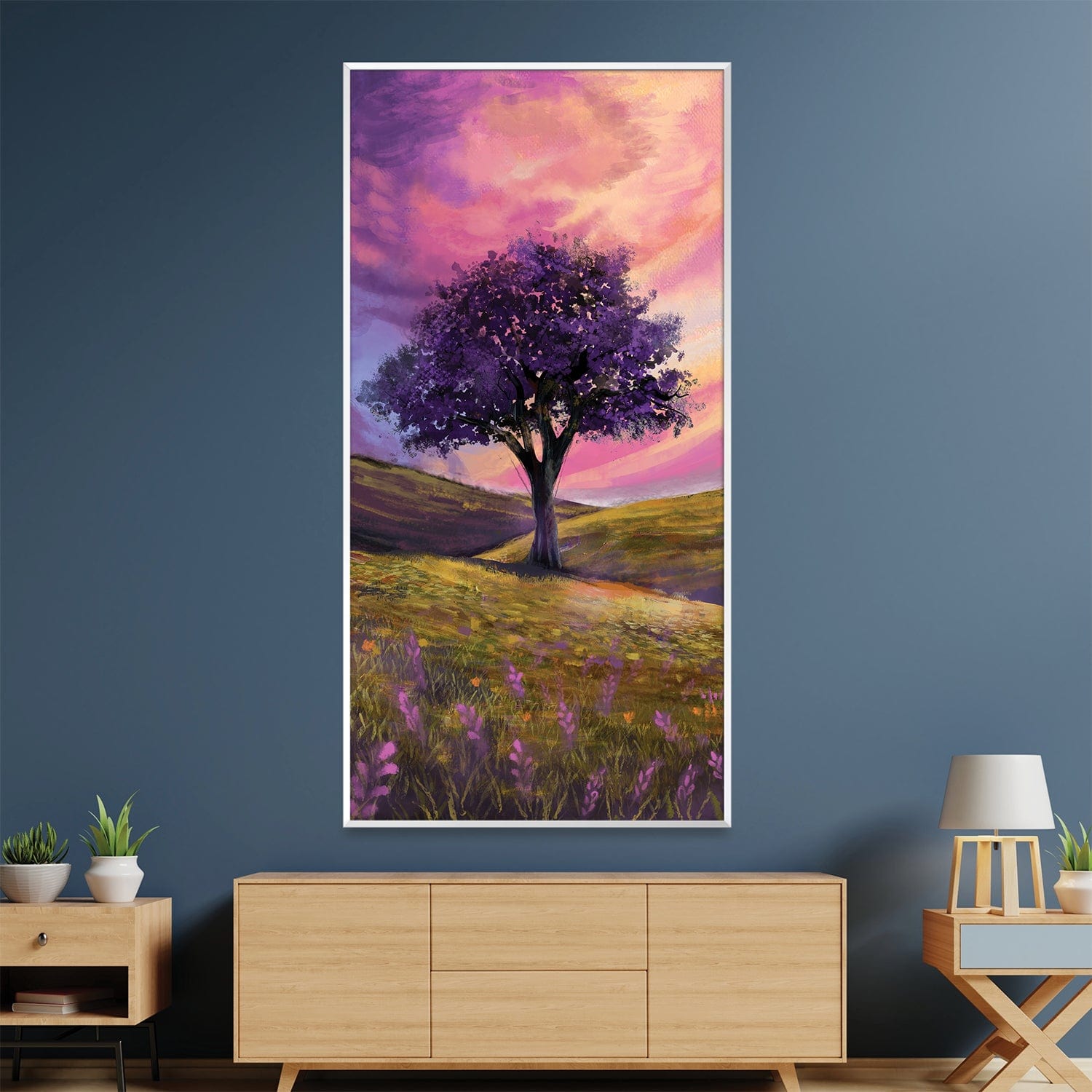 Rynx | Crimson Dusk and Lavender Flowers Canvas