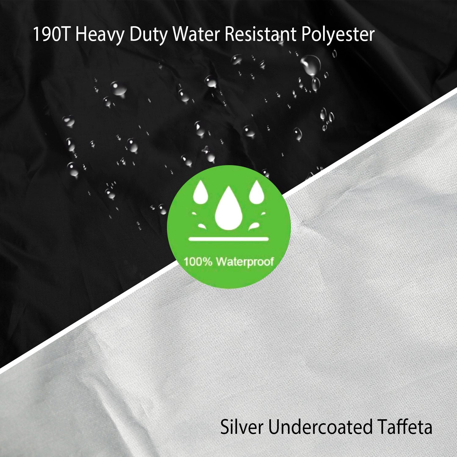 - 190T Material for Harsh Weather Conditions: This garden furniture cover is constructed from 190T high-density polyester with a silver-lined backing, ensuring that your table and chair set is safeguarded on all sides against severe weather conditions.