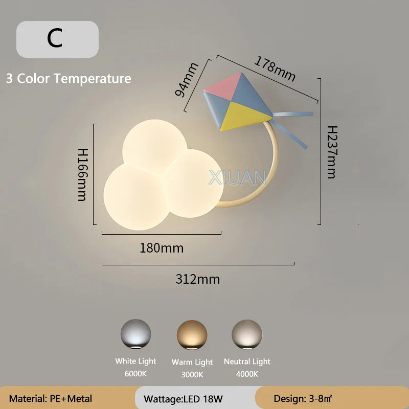 Bring celestial magic into your child's space with the CartoonFly wall lamp. This imaginative fixture blends playful designs like stars, rainbows, and airplanes, making it perfect for fostering a warm and creative environment.