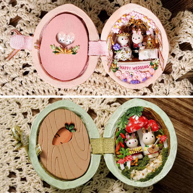 ๐ฐ Unique Design: This miniature dollhouse is designed in the shape of a resin house made from walnut, where an adorable bunny resides.