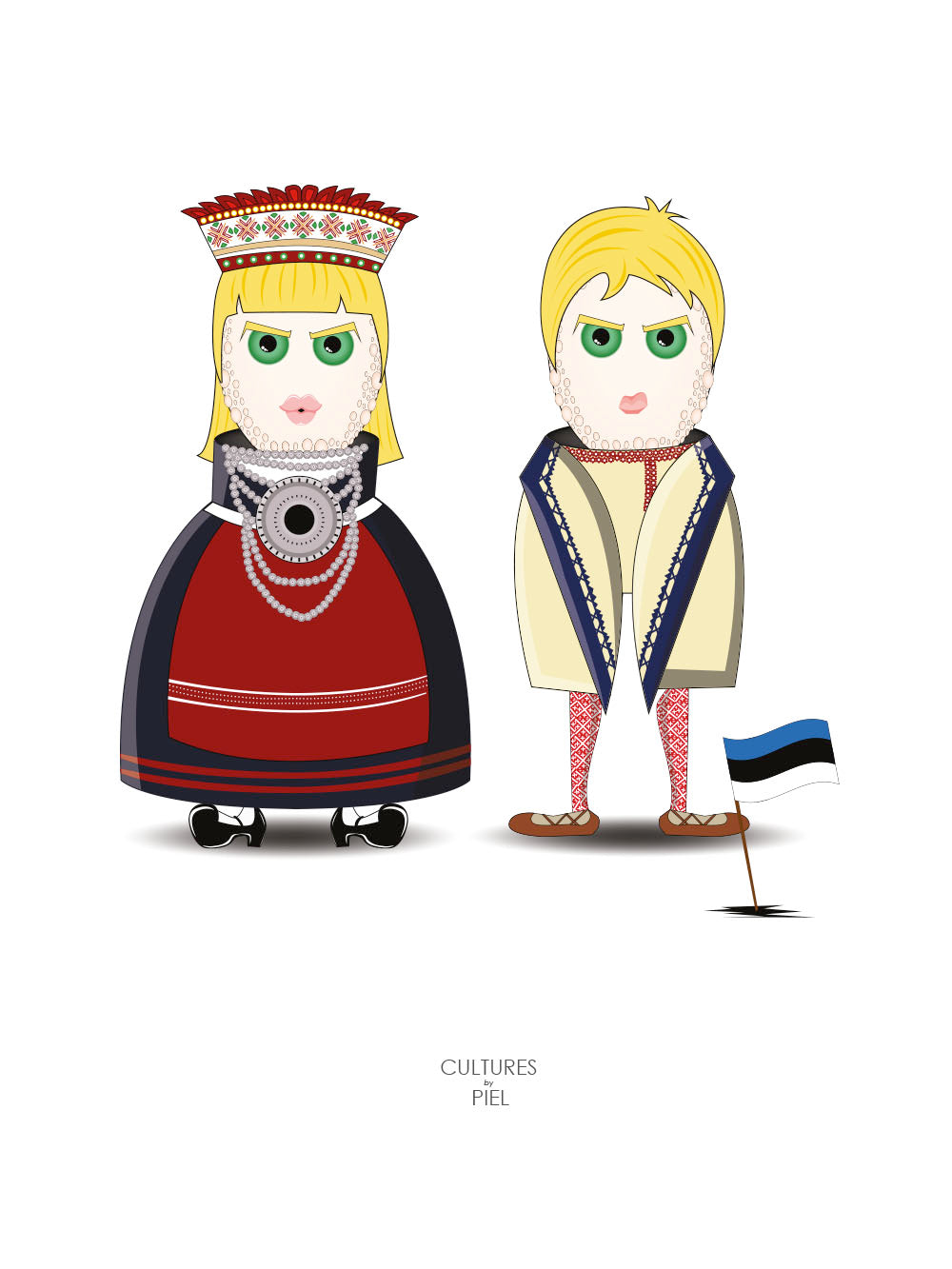 The design is inspired by the traditional folk dresses of Estonia.