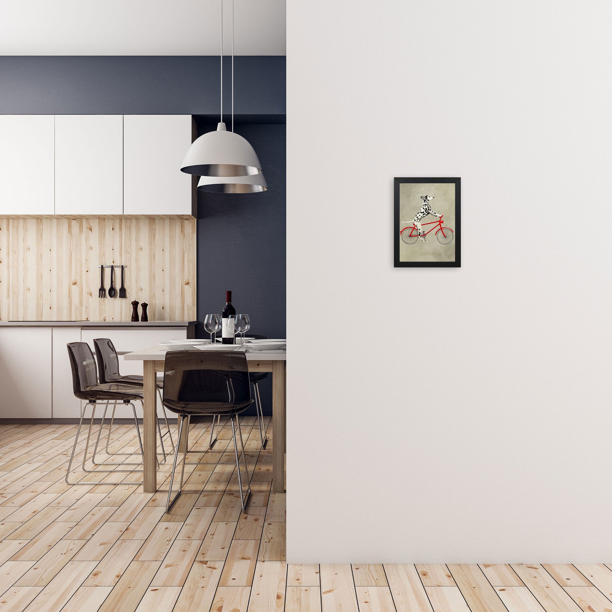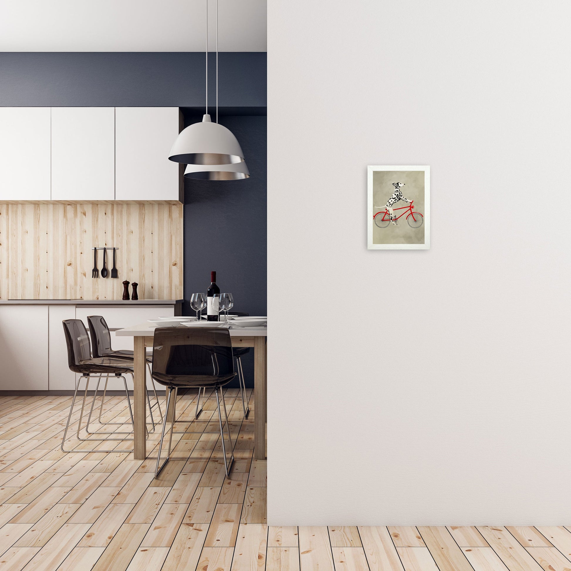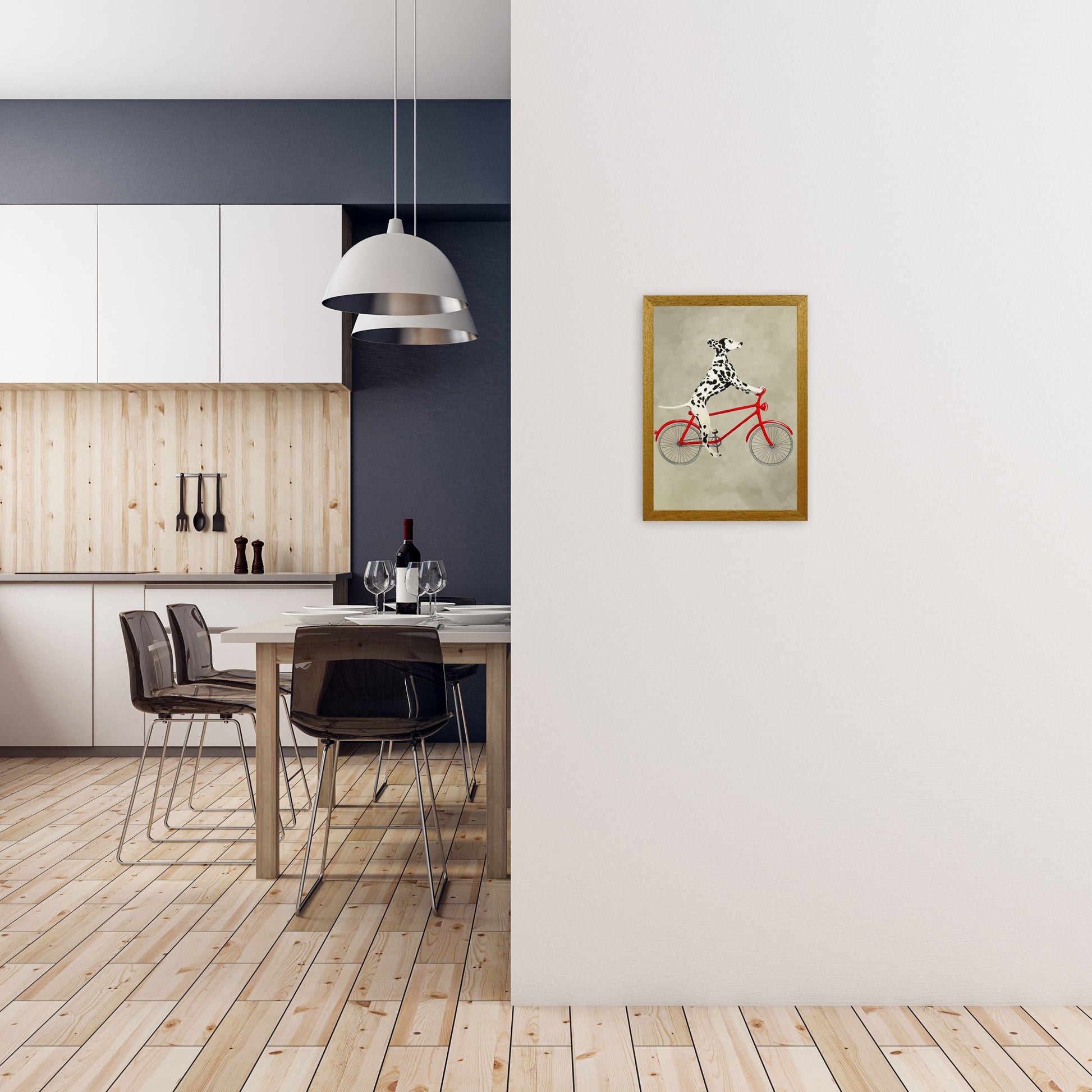 Dalmatian on bicycle original Giclée art print. Available as a framed print, unframed print, or vibrant canvas art. Art print from an original piece by Coco Deparis ©