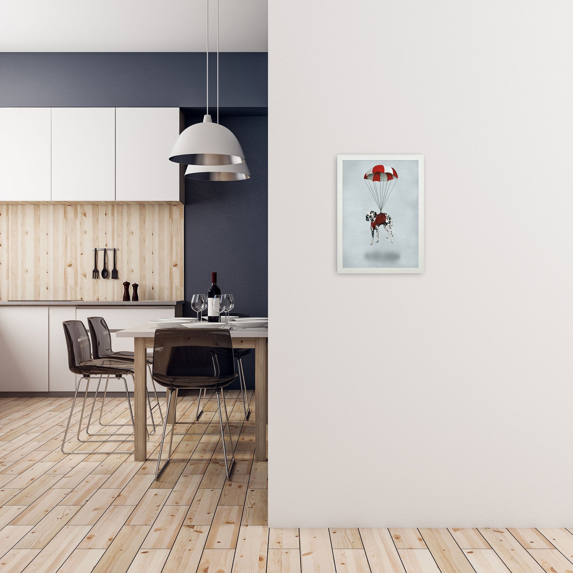 Dalmatian Parachute original Giclée art print. Available as a framed piece, a standalone print, or vibrant canvas art. This art piece is inspired by the original work of Coco Deparis ©