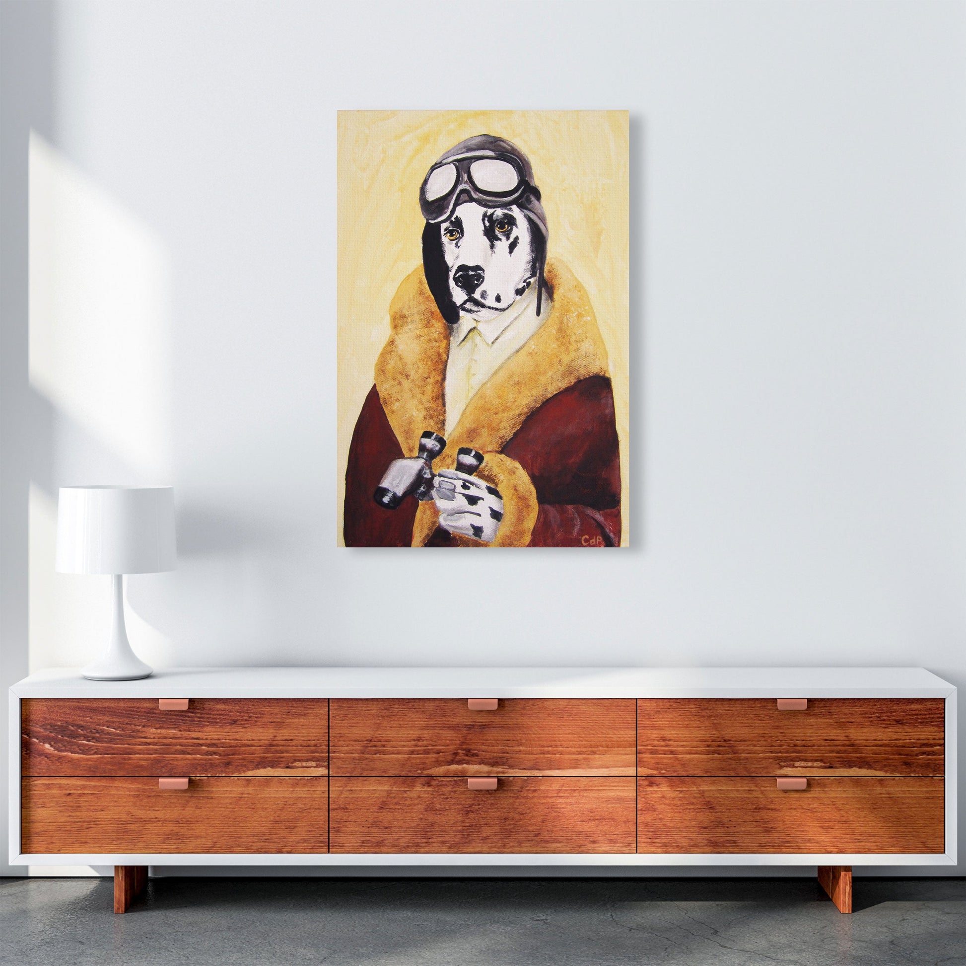 Dalmatian Pilot original Giclée art print. Available as a framed piece, unframed print, or vibrant canvas art. The artwork is derived from an original creation by Coco Deparis ©