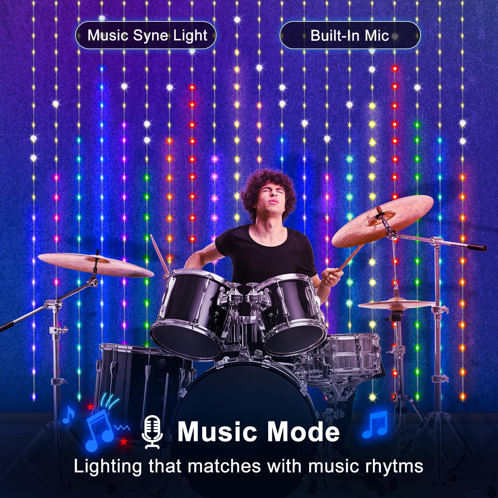 Rynx | Dealbeta Smart Curtain Lights, 400 Led Music Sync Light, 6.6Ft X 6.6Ft, App &