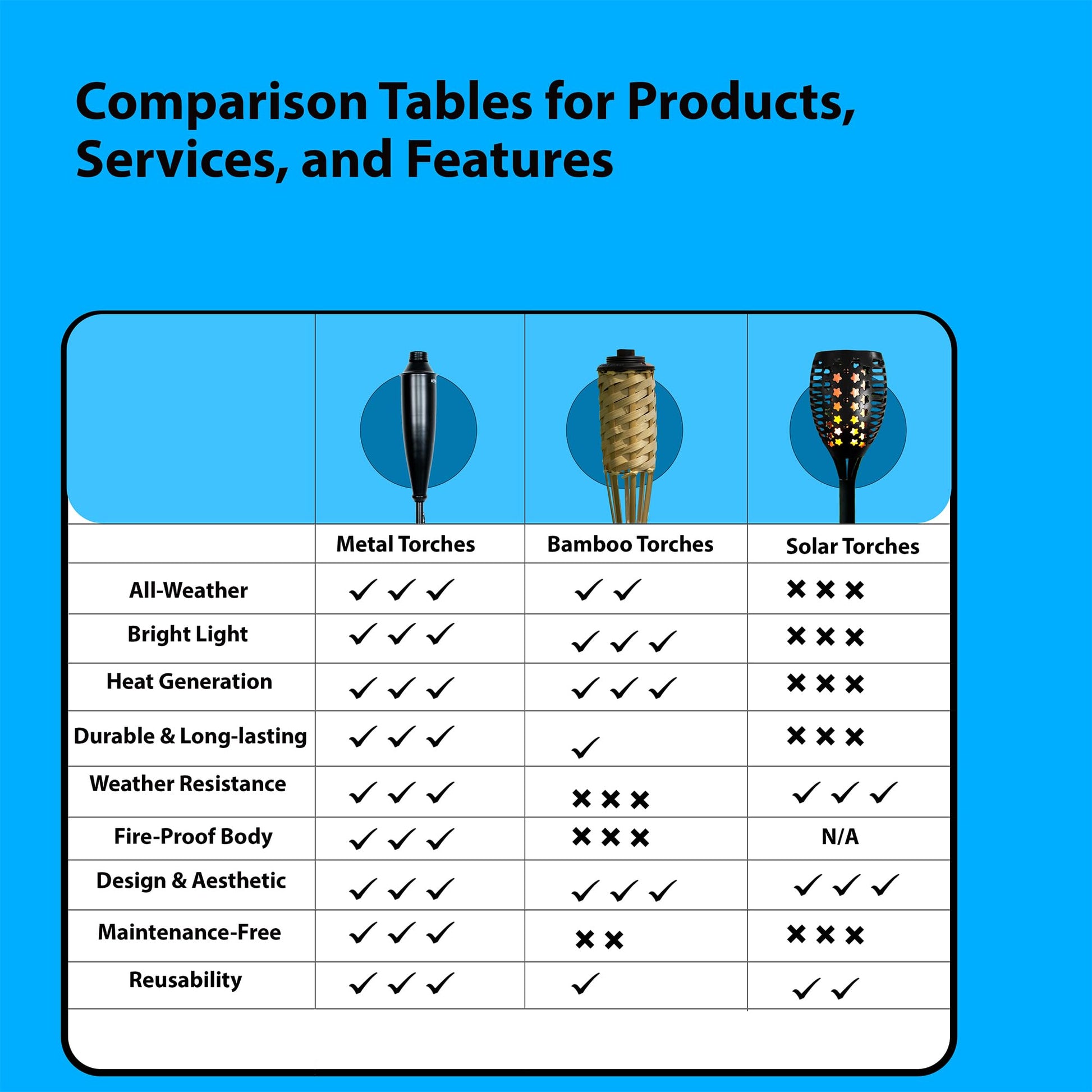 - Extended Burn Time: Each torch holds 13.5 oz of fuel, offering over six hours of uninterrupted lighting.
