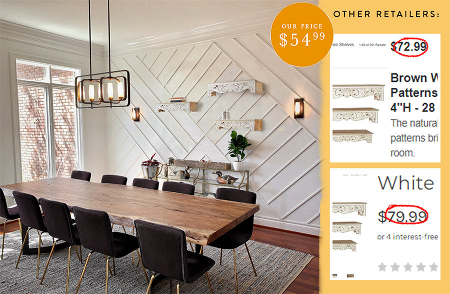 We believe that at Décor Steals, you receive exceptional value for your investment, and this product exemplifies that perfectly! These beautiful Victorian wall shelves are absolutely MAGICAL! The intricate details are AMAZING, and the price is simply unbeatable... for a set of THREE!