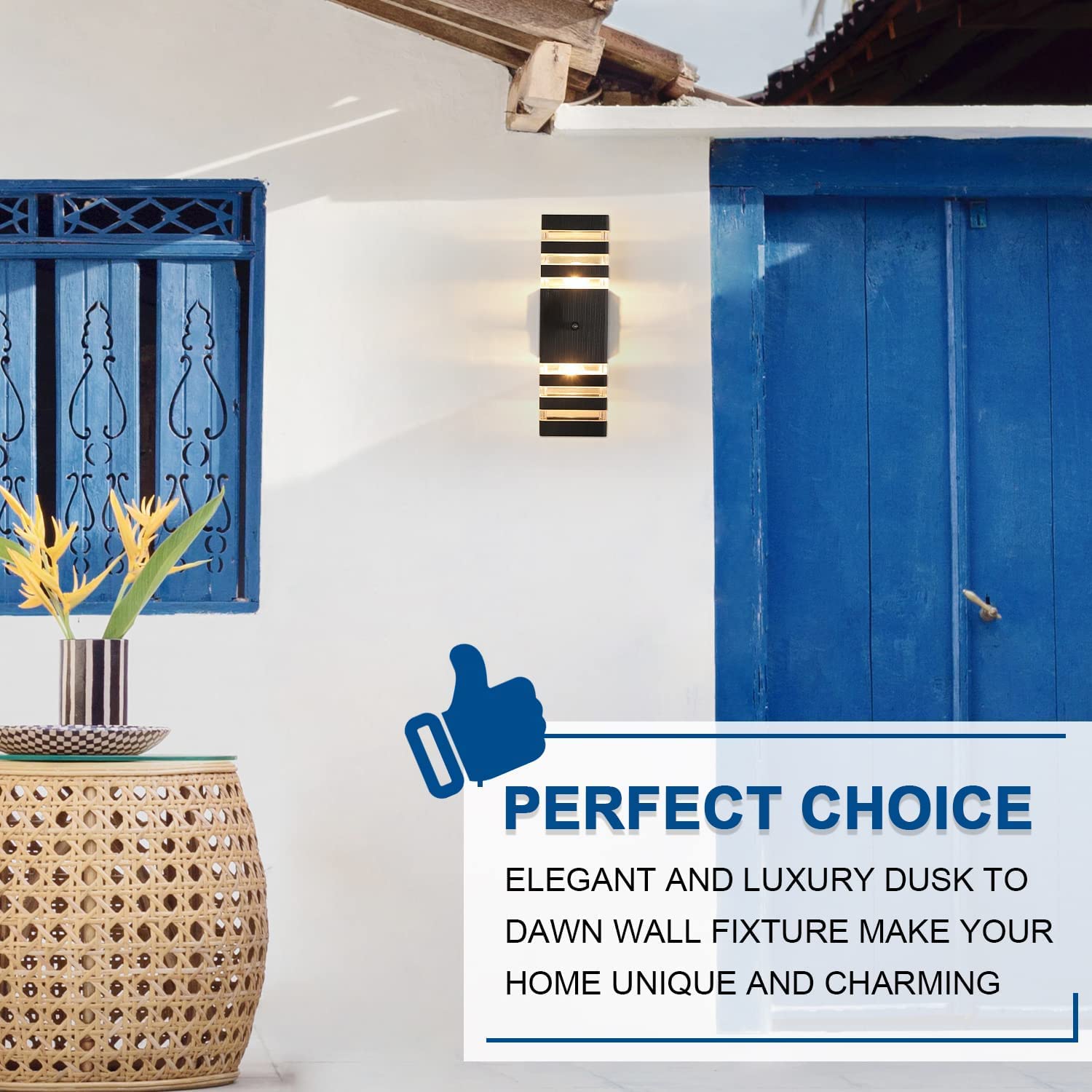 - **Dusk-to-Dawn Functionality**: Equipped with a highly sensitive photocell sensor, this wall lamp automatically turns on at dusk and off at dawn, providing hassle-free use without the need for a switch.