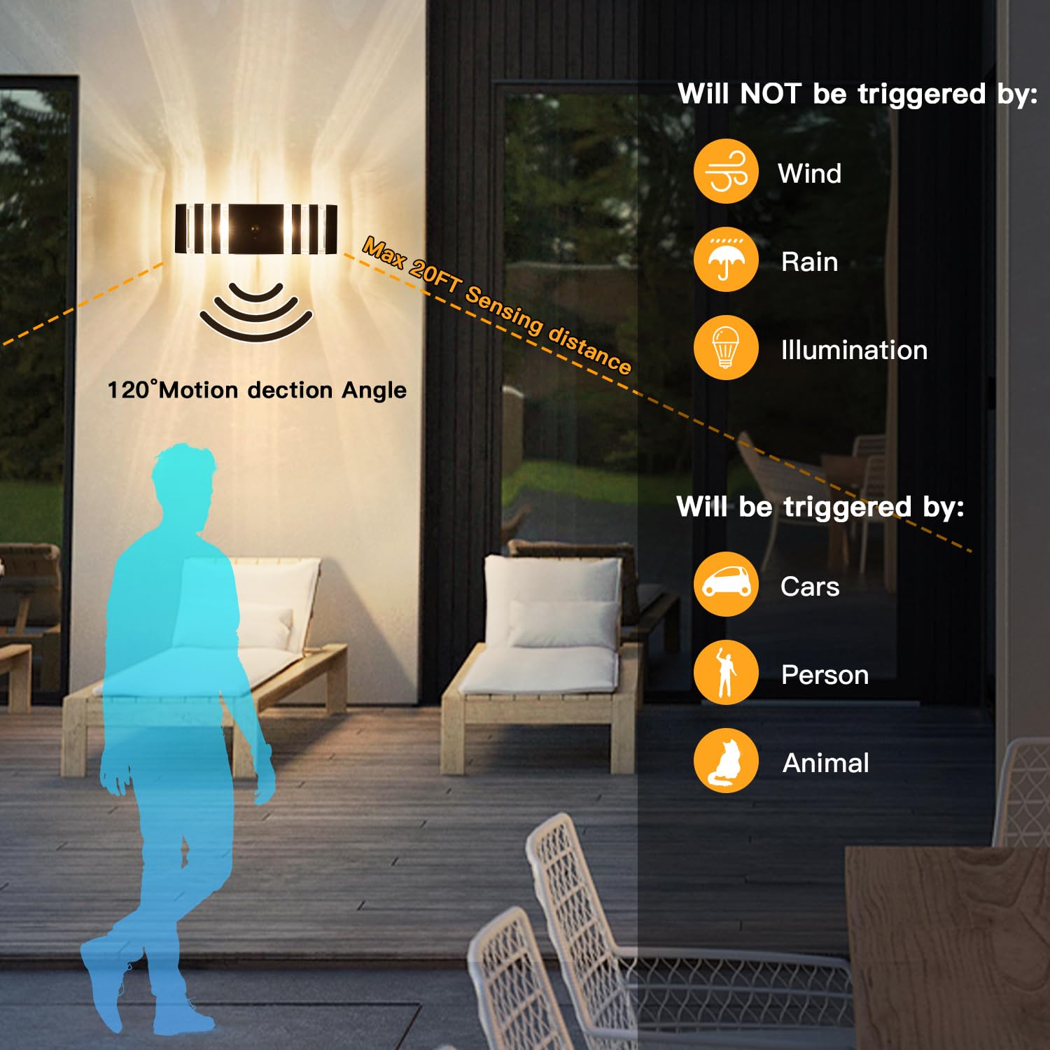 Rynx | Delicavy Motion Sensor Outdoor Wall Lamp, Dusk To Dawn Sconce With 2 Dimmable Bulbs
