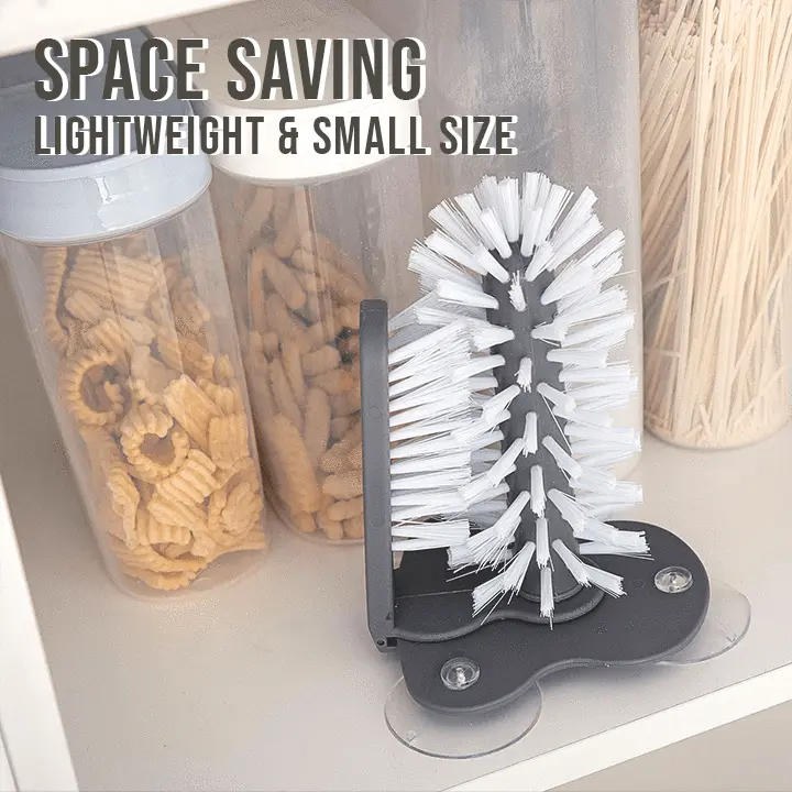 This versatile double-ended cup brush simplifies the task of cleaning bottles, cups, and glasses. Featuring three powerful suction cups, it remains securely anchored during use. The sturdy bristles and rounded shape ensure effective cleaning inside and out – all while requiring minimal effort. It's compact, easy to take apart, and perfect for everyday use in the kitchen.