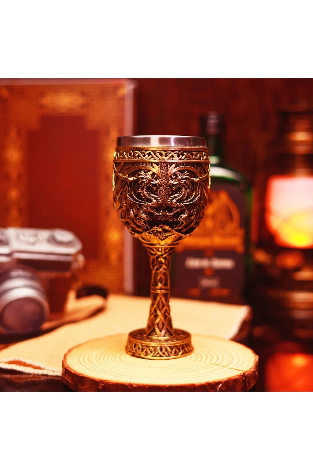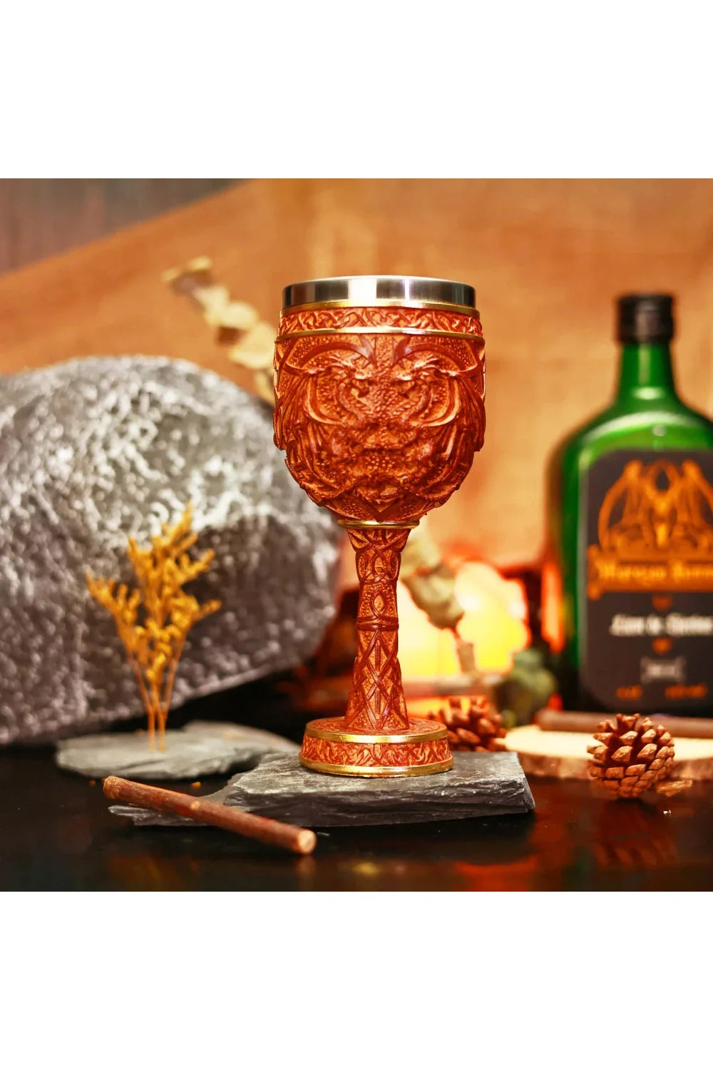 The captivating dragon goblet is an exceptional item for anyone who loves the enchanting and otherworldly. Featuring beautifully crafted twin dragons in striking hues of blue and purple, this goblet is ideal for introducing a hint of gothic style to your assortment. It works wonderfully for themed parties, medieval decor, or as a unique present for enthusiasts of fantasy novels. This goblet serves as both a drinking cup and an eye-catching decorative piece.