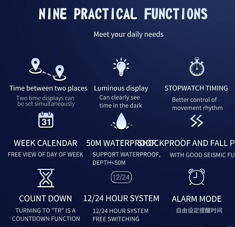 From intense sports to relaxing outings, this watch is designed to keep up with your lifestyle. The luminous hands and LED display provide good visibility even in low light conditions, making it perfect for evening jogs or late activities. With its shock-resistant design, it handles the greatest stresses from your most demanding activities with ease.Why Choose This Sports Watch?