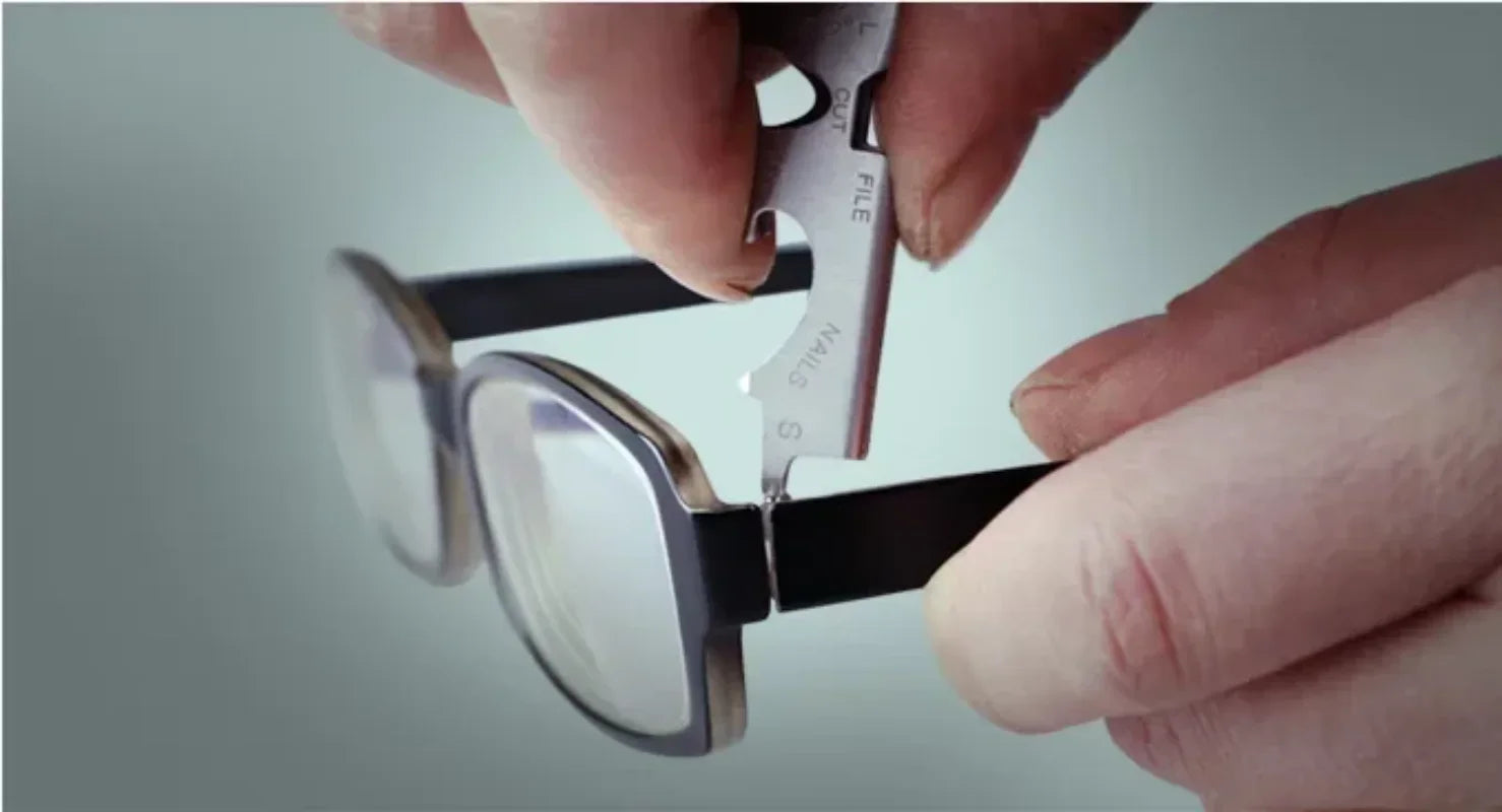 - 8 Tools in 1: Eliminate the need to carry multiple items—this tool includes a bottle opener, eyeglass screwdriver, medium and large screwdrivers, nail file, fingernail cleaner, thread cutter, and tweezers!