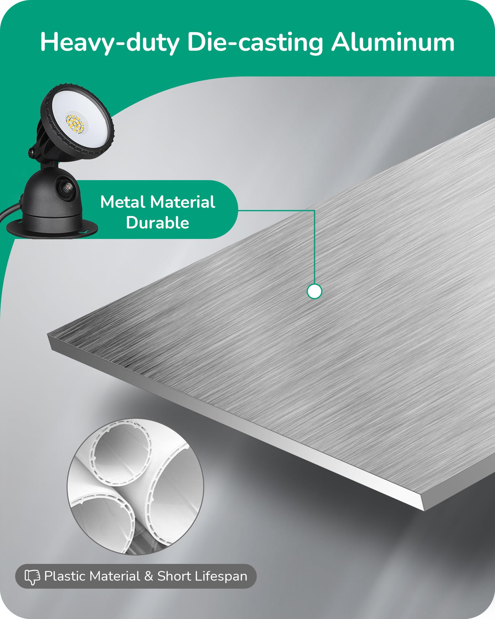 - Durable & Waterproof: Rated IP65, constructed from sturdy die-cast aluminum to withstand rain and dust.