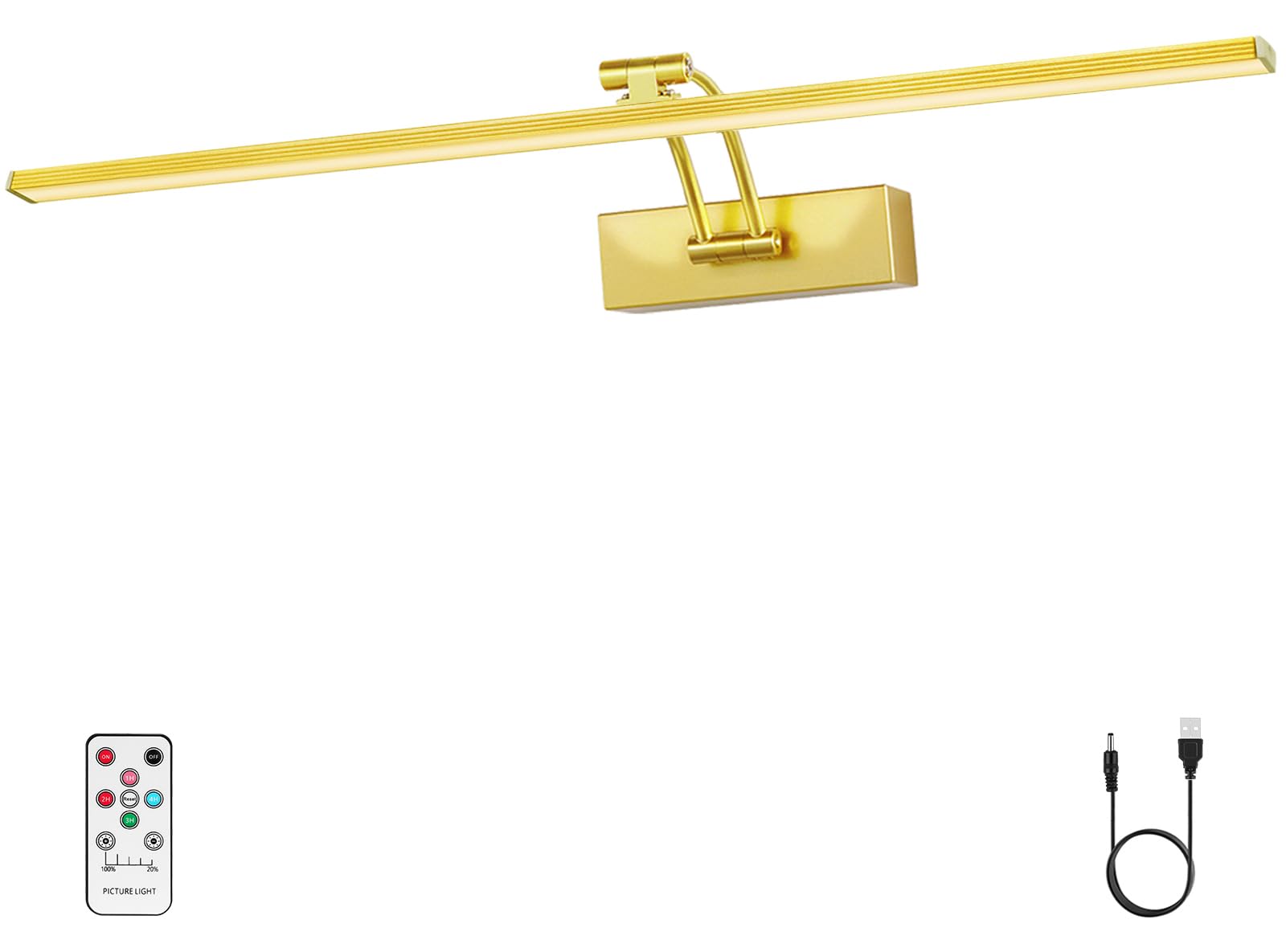 Elavika Wall-Mounted Battery-Powered Lighting, 24'' Wireless Decorative Lamp with Remote Control, Timer, 6400Mah Rechargeable Wireless LED Gallery Illumination, Dimmable for Picture Frames and Artwork, Gold