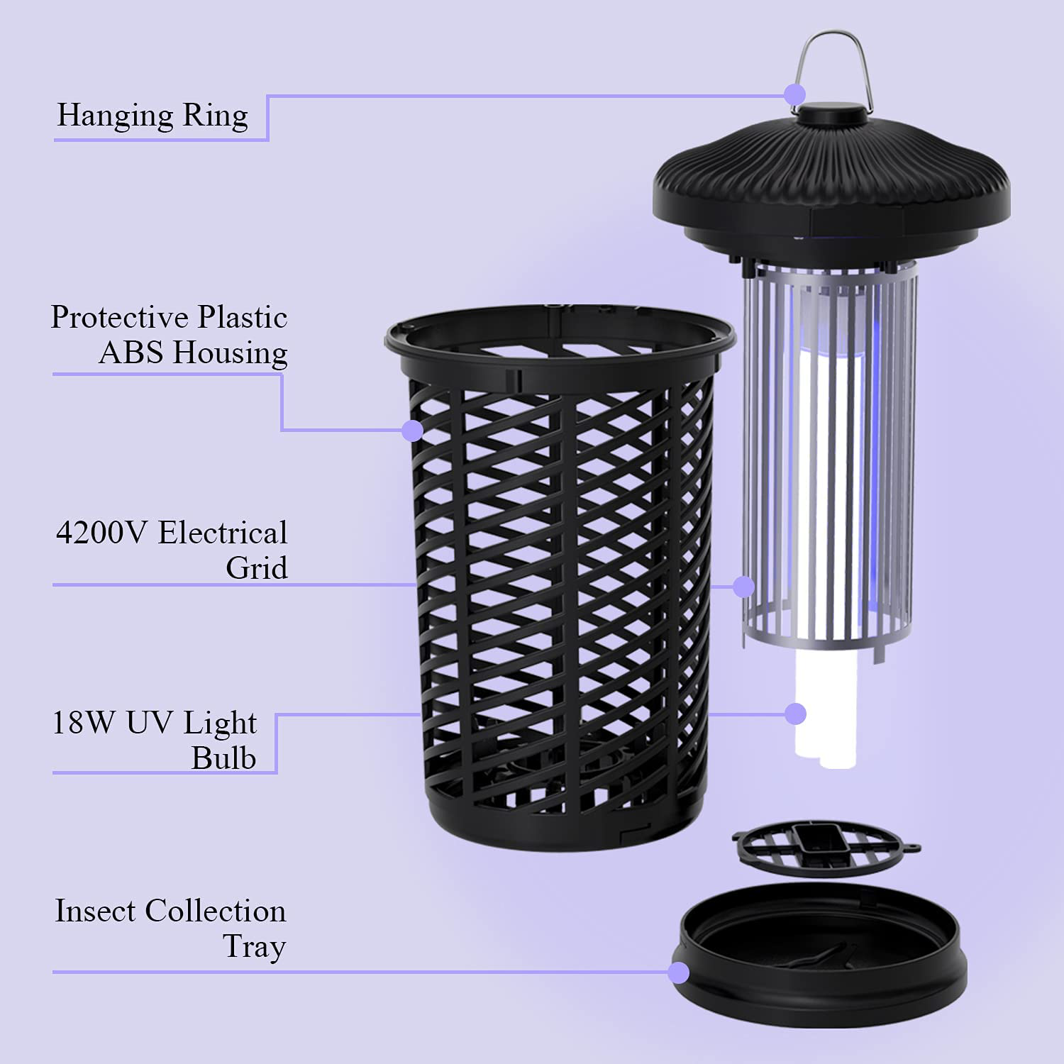 - [Highly Effective Mosquito Eliminator] This Electric Insect Killer uses a powerful 4200V electric grid and a UV light bulb. The highly efficient and energy-saving light source emits specific ultraviolet waves to lure insects in. The insects are drawn to the ultraviolet light and receive an electric shock upon contacting the electrified grid.