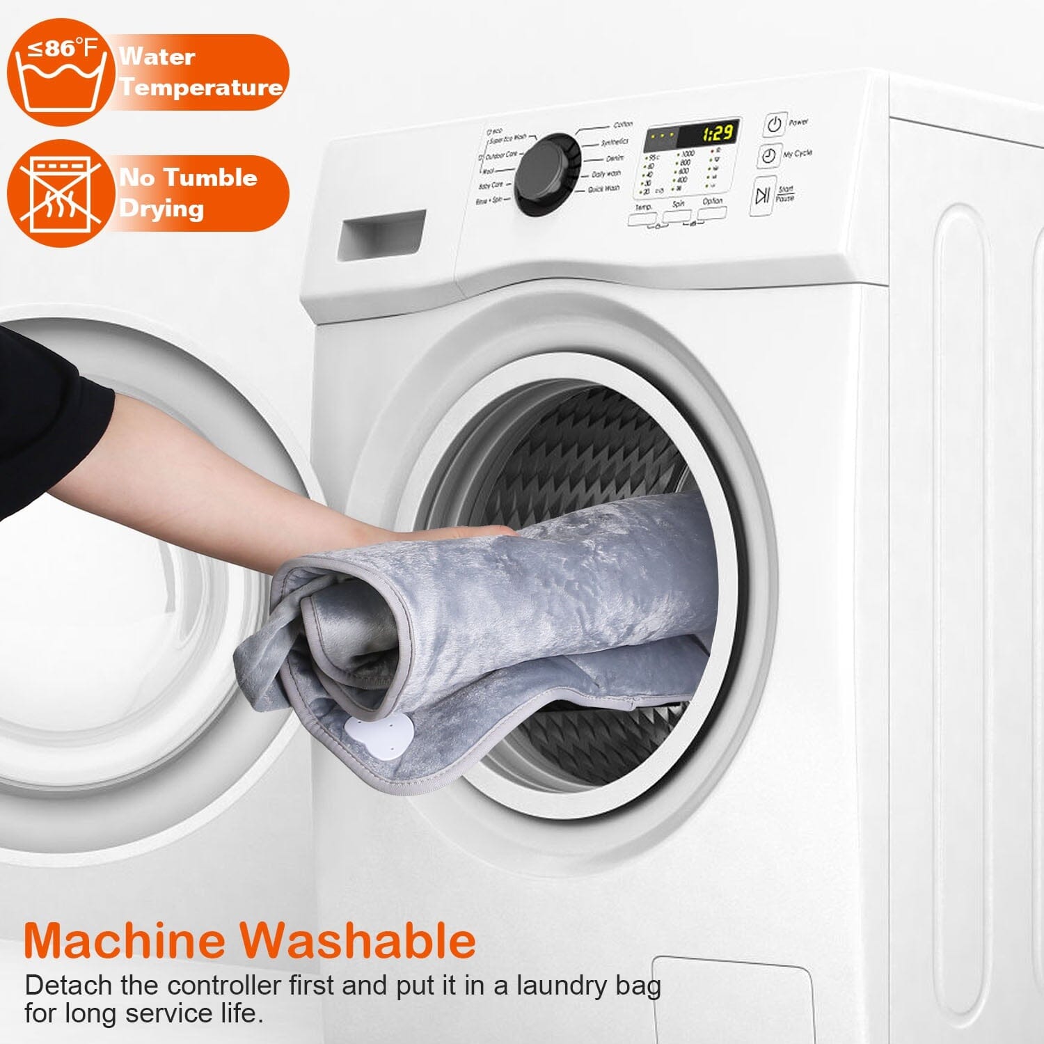 - Machine washable: This blanket is machine washable. Just remove the controller and toss it in the machine. Tip: No tumble drying!