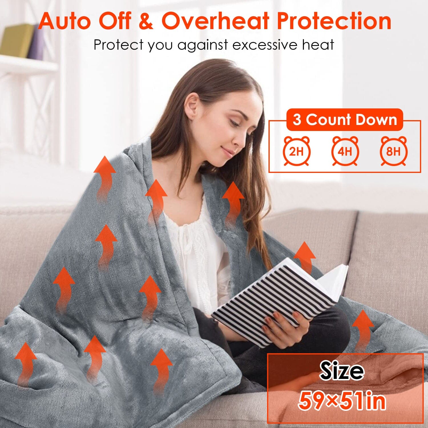 - Incredibly comfortable: This electric heated blanket is crafted from ultra-soft flannel on both sides, providing a plush feel and better heat retention. The generous size of 59x51 inches envelops your entire body, cradling you in a velvety embrace.