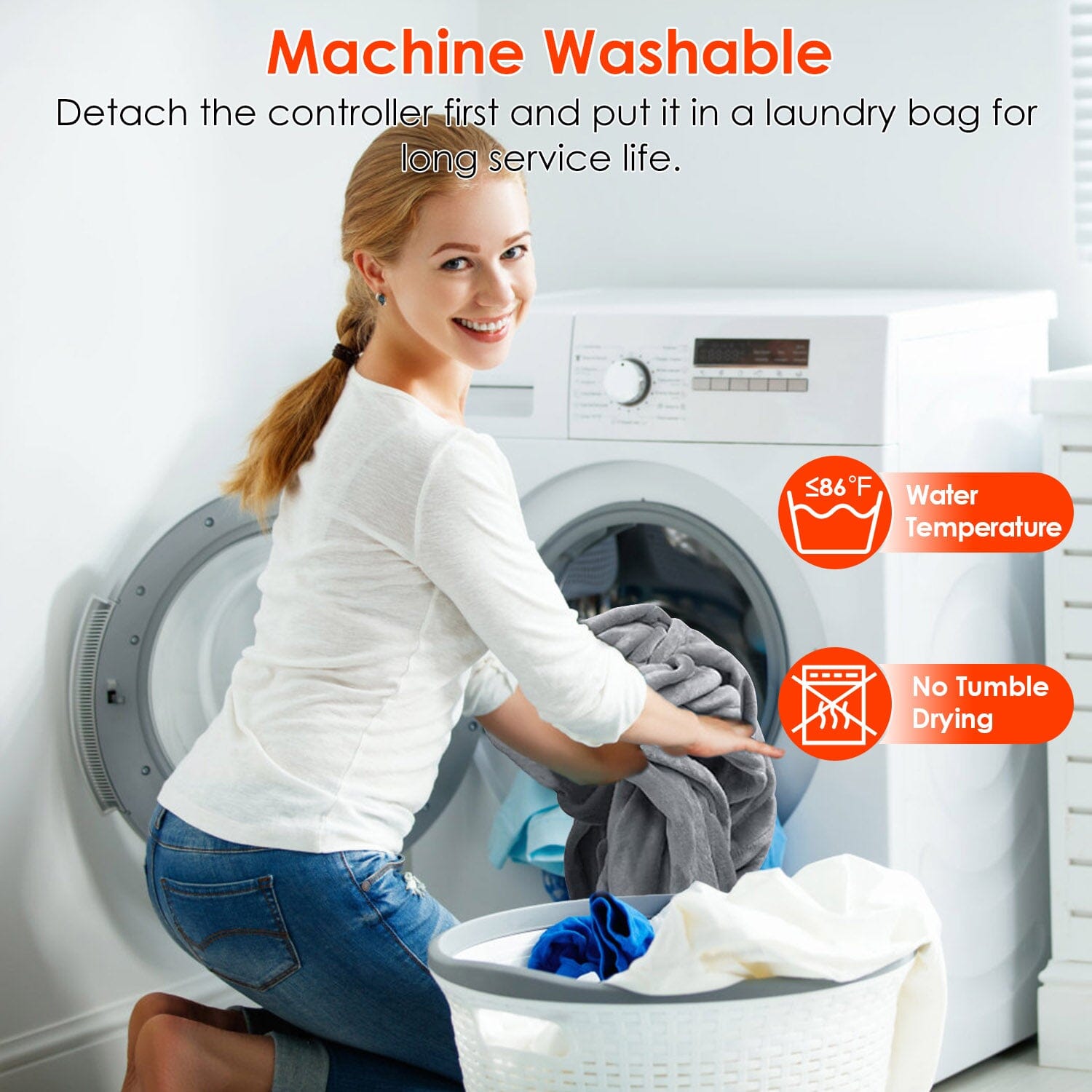 - Machine washable: Simply detach the heating controller, machine wash on a gentle cycle, and allow the blanket to air dry. Please do not dry clean or use bleach. Hand washing is recommended to ensure its longevity.