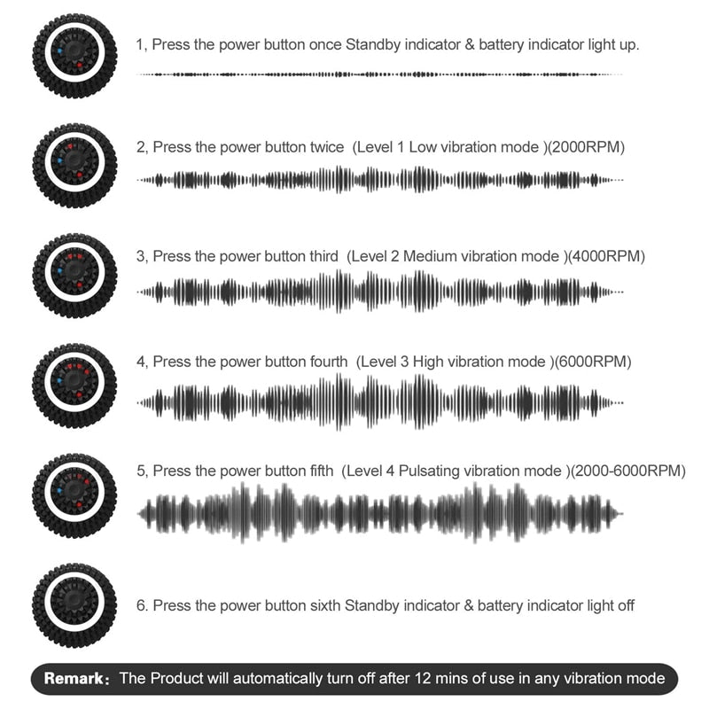 Product Description: Release muscle tension and discomfort while experiencing the healing advantages of a focused massage. Revitalize your muscles and enhance your recovery with the Electric Massage Ball. This versatile device offers four levels of vibration – Gentle, Medium, Strong, and Pulsating – to cater to your personal preferences. Whether you're warming up, improving circulation, or aiding recovery after a workout, this massage ball has everything you need.