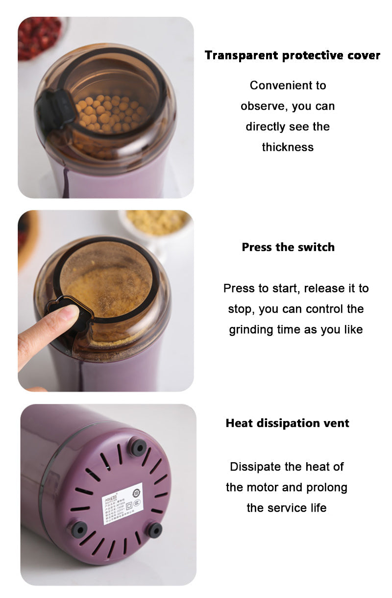 - Very suitable for grinding coffee beans, nuts, grains, herbs, spices, etc., saving your energy and time;