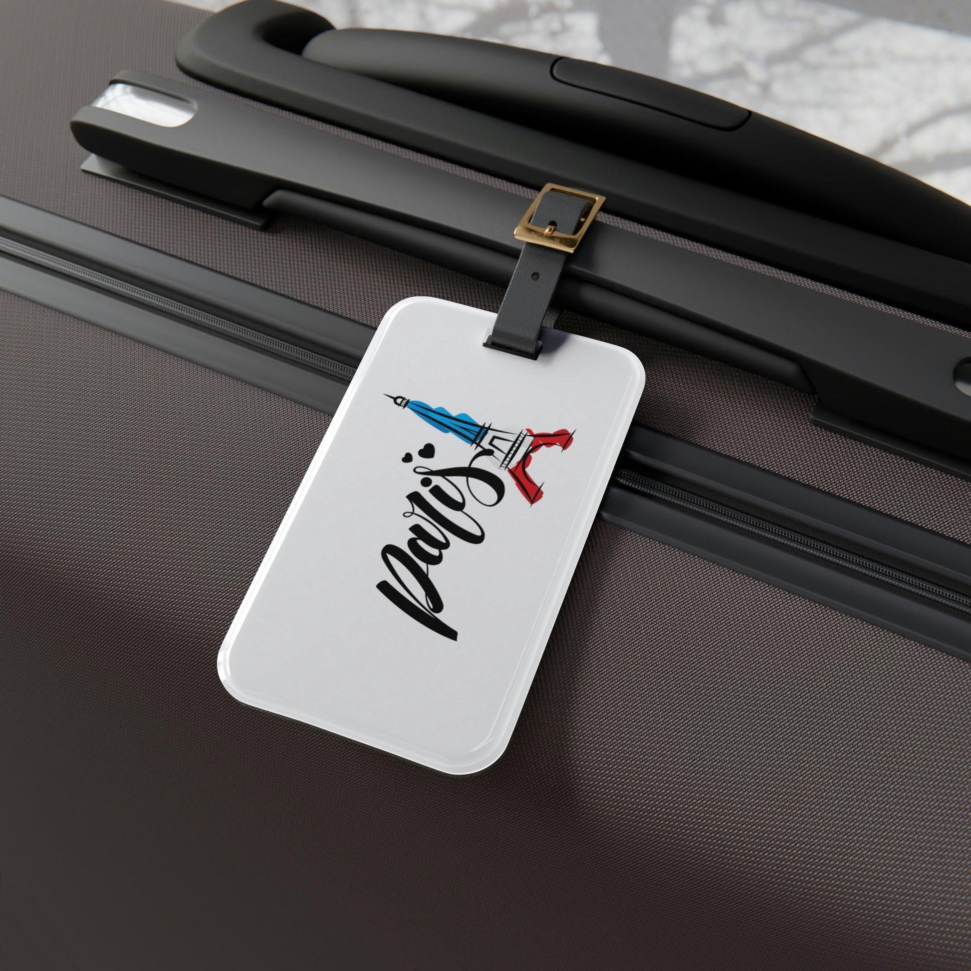 Chic Parisian Experience: Custom Acrylic Luggage Tag with Leather Strap