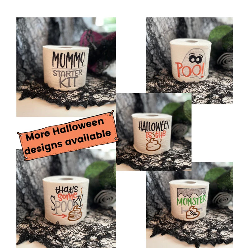 Add a unique flair to your Halloween decorations with our hilariously embroidered toilet paper!