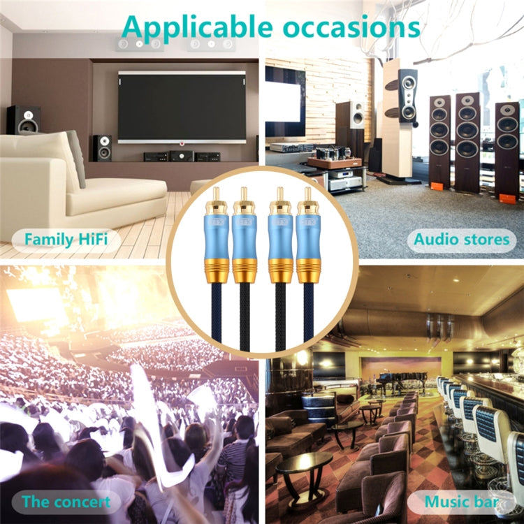 Rynx | EMK 2 x RCA Male to 2 x RCA Male Gold-Plated Connection Nylon Woven Coaxial Audio Cable for TV / Amplifier / Home Theater / DVD, Cable Length: 1m (Dark Blue)