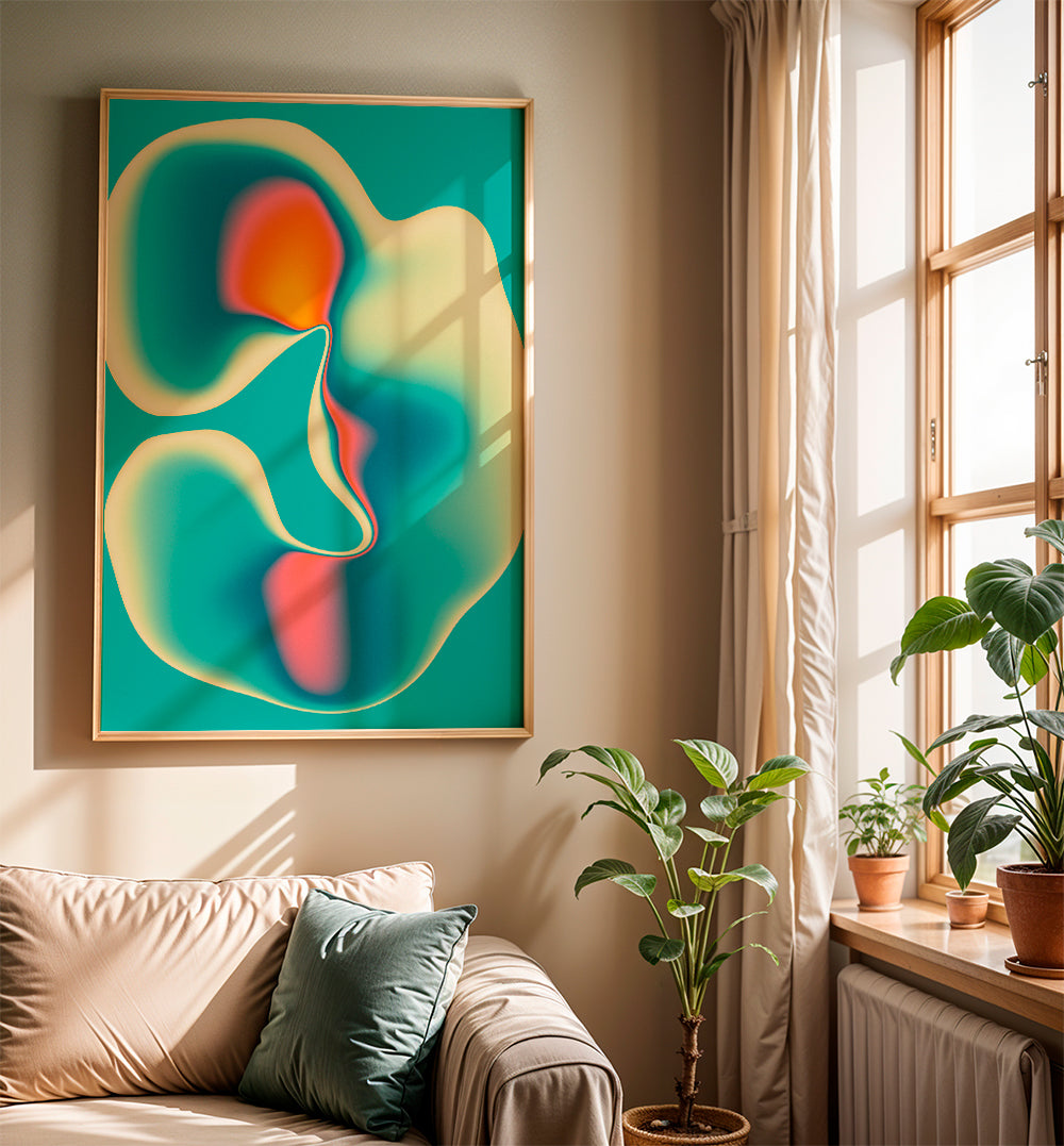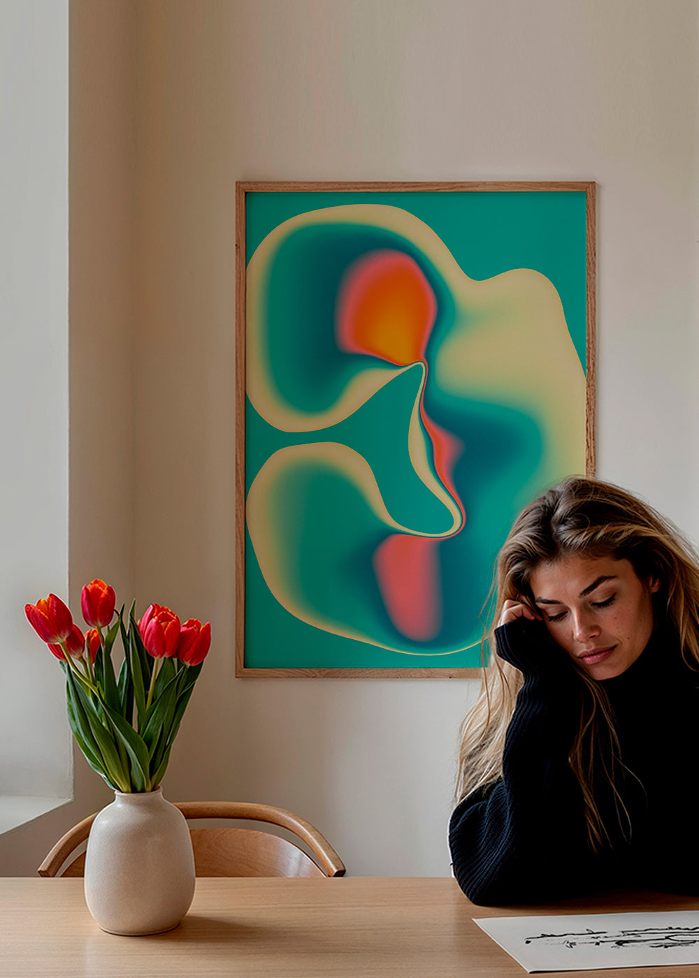 This poster draws inspiration from a collection of abstract artworks and prints. A unique piece in 1x format with varying shades of blue in a vertical layout. This design is ideal for elevating the style in modern rooms. Combine it with other abstract elements to create a sense of contemporaneity. Choose the size that best fits your interior concept.