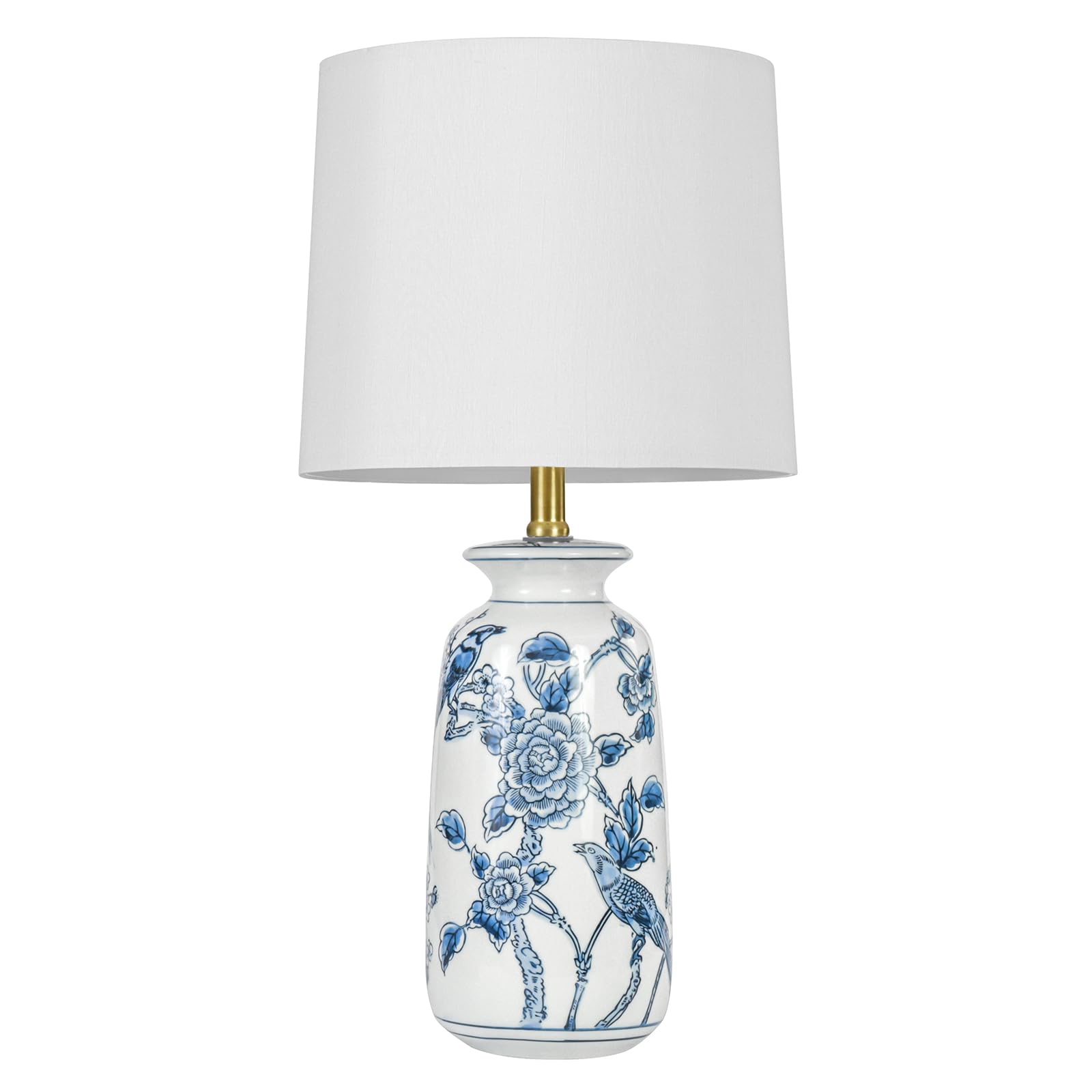 With a height of 24.25'' and a width of 12'', the size of the Euo blue and white porcelain lamp is ideal for use as a ceramic bedside lamp on your nightstand, or as a mid-century modern table lamp for the living room, fitting perfectly on side tables, end tables, or kitchen counters. The timeless design featuring birds and flowers makes this ceramic table lamp exceptionally decorative and artistic. The blue and white color scheme adds a chinoiserie touch to your home and office. The white shade plays a crucial role in filtering direct light, softening the illumination which helps to protect your eyes. During the day, the Euo blue and white chinoiserie table lamp serves as a decorative piece in your home. As night falls, this tall ceramic lamp creates a cozy and warm atmosphere for your home, accompanying you and your family through every night.