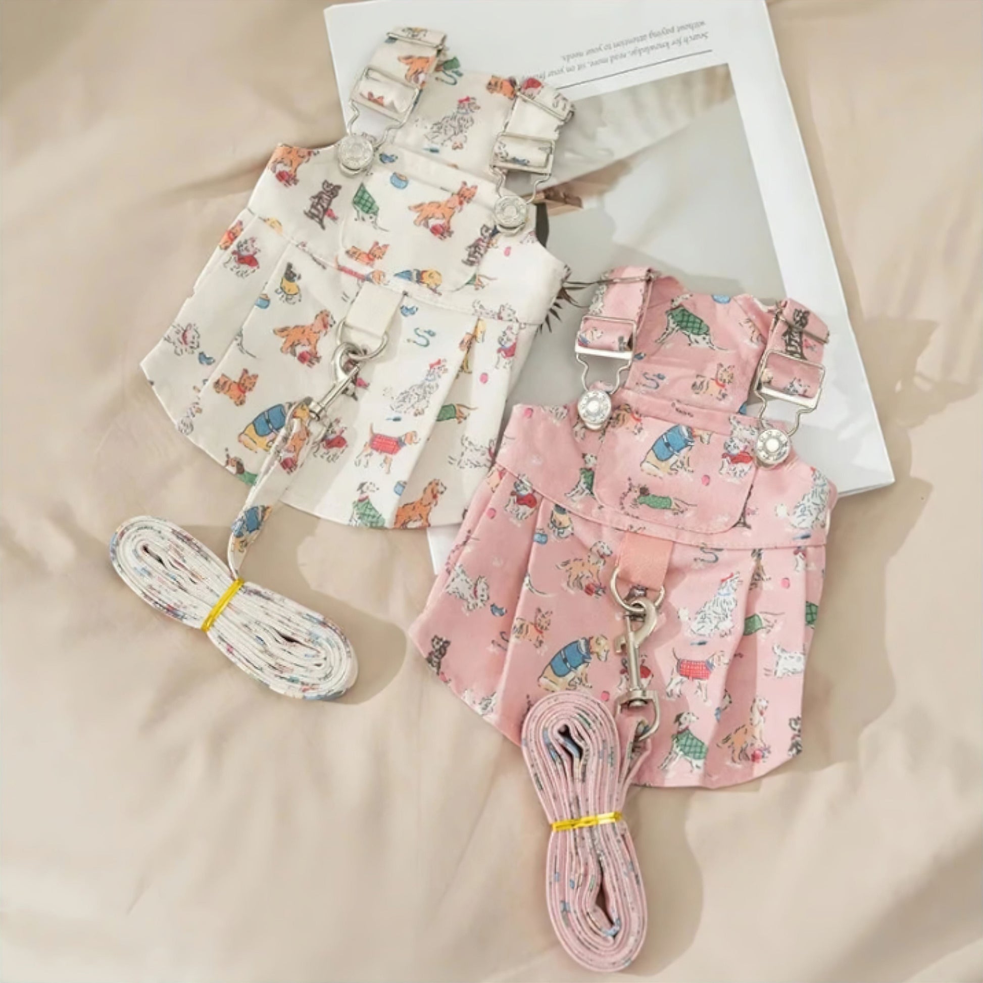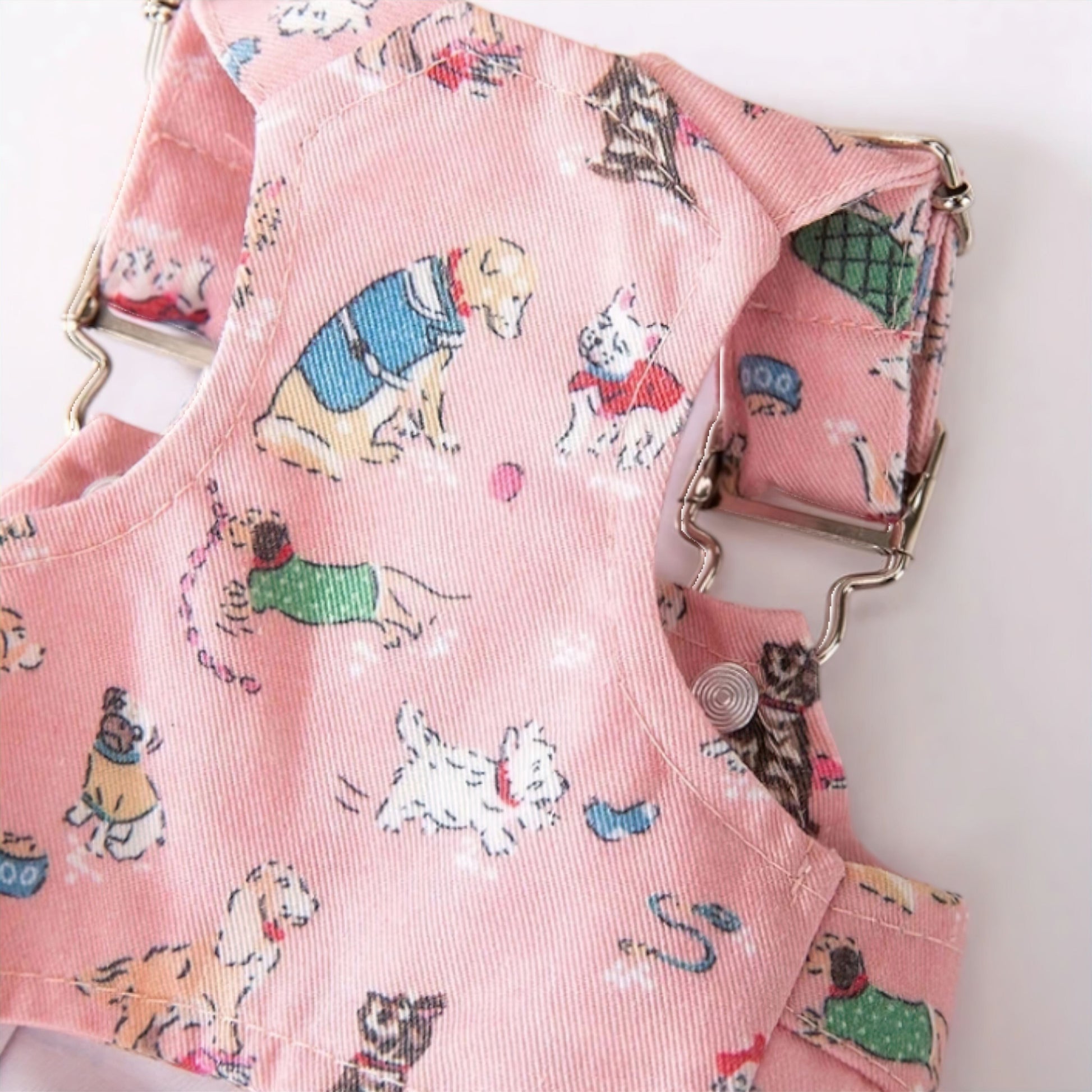 Rynx-Tail Overalls add a delightful touch to your pet's outfit with their charming cartoon pattern and graffiti-style overalls. Specifically designed for small dogs, this airy and comfortable slip dress features a convenient adjustable strap, making it both fashionable and practical for daily walks.