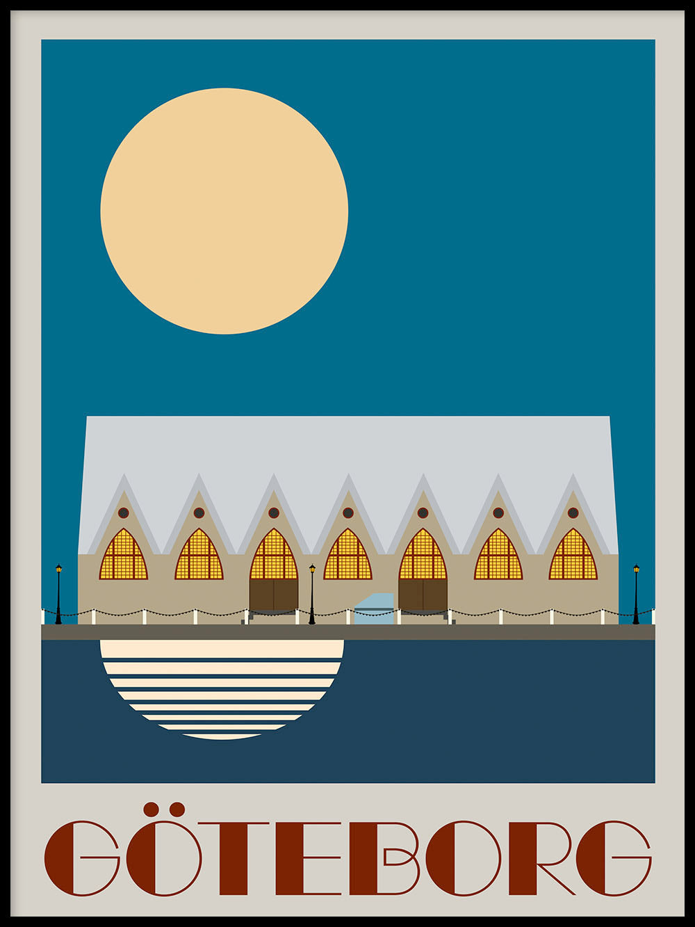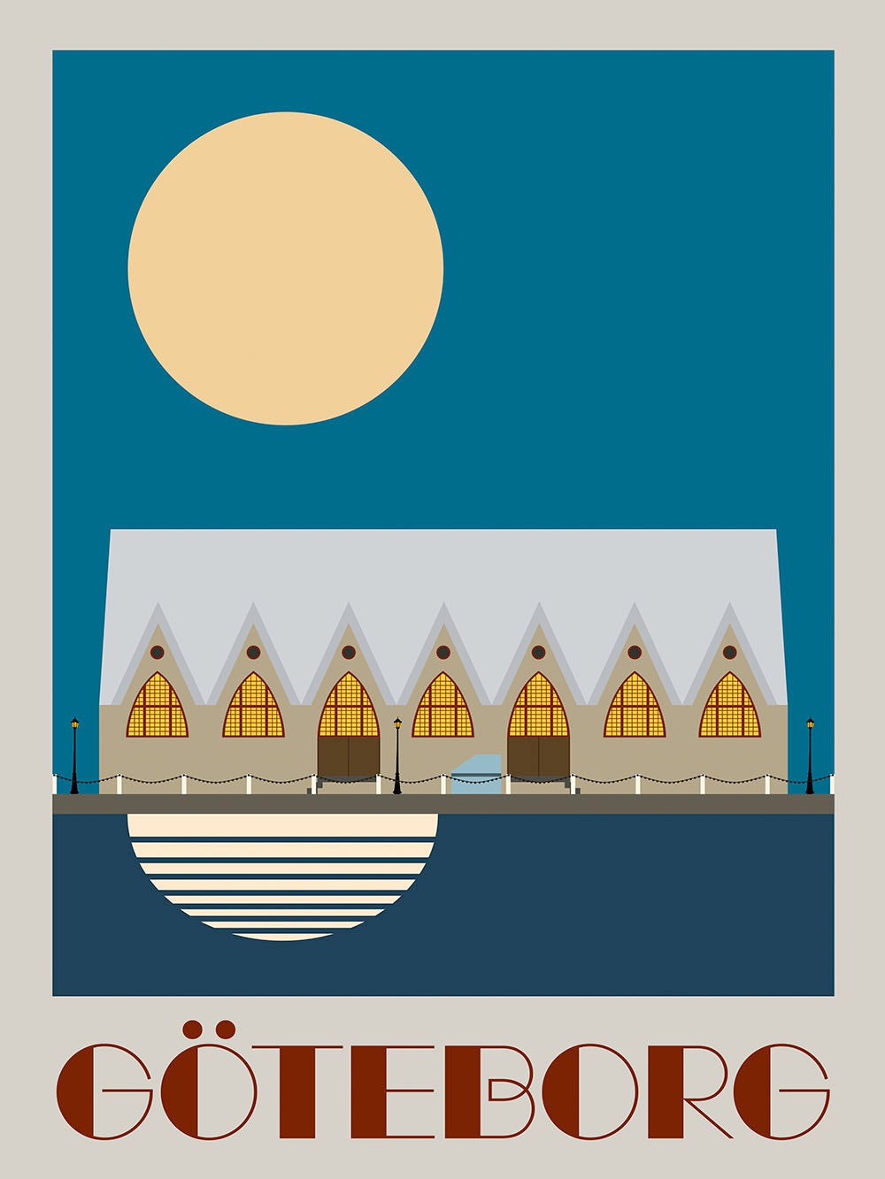 This poster, inspired by the captivating Bauhaus era, features an illustration of the Feskekörka in Gothenburg, Sweden.