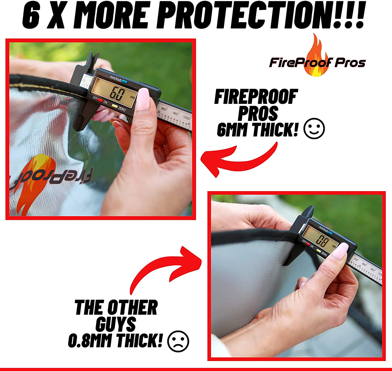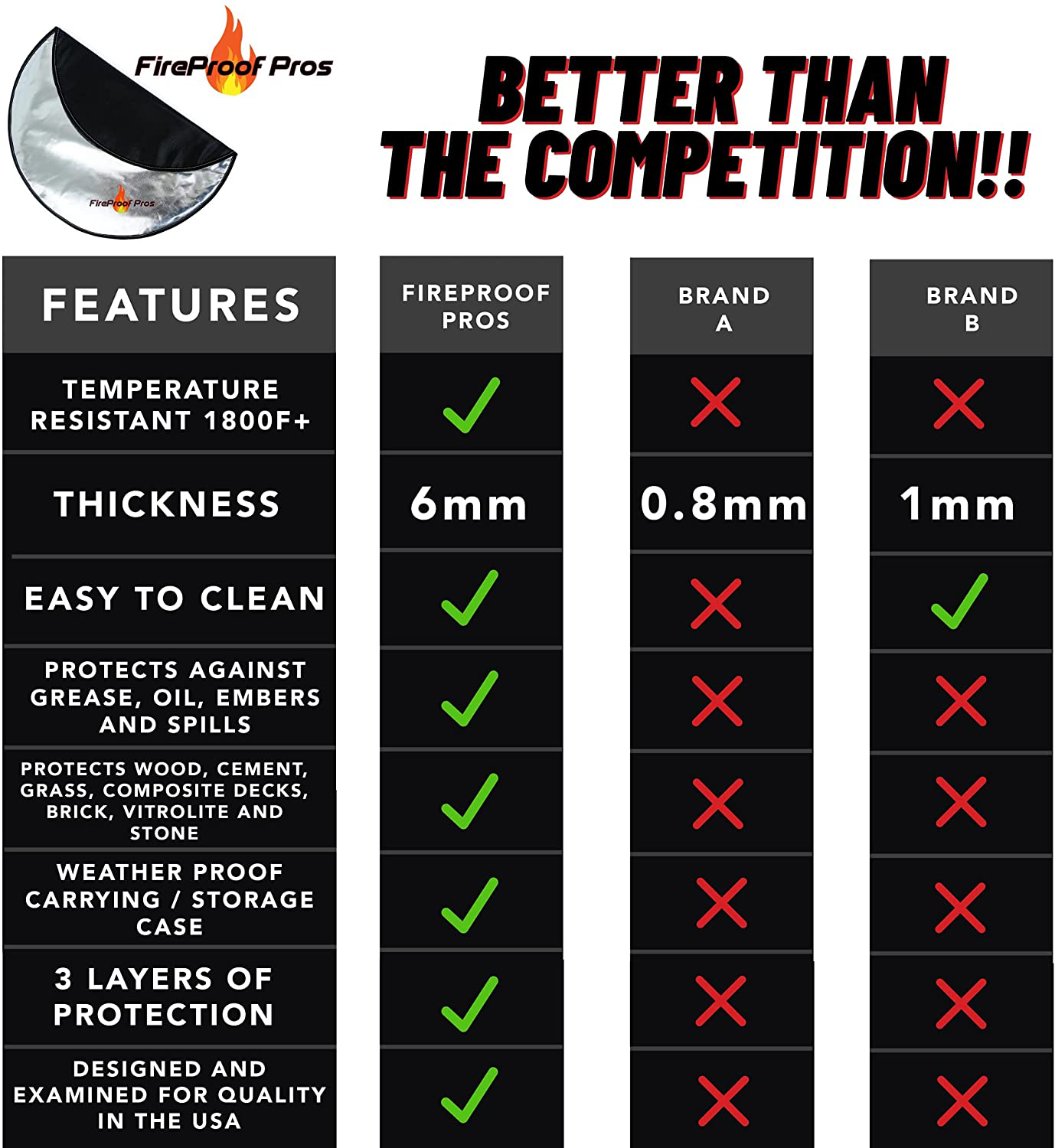 - 6x Thicker: You might wonder if a standard 1mm fireplace mat offers enough thickness to shield grass, pavers, or wood. Doesn't it look extremely thin? In most cases, you'd be correct. However, as we are the original Fireproof Pros, our mats are always 6.0mm thick for professional fire protection!