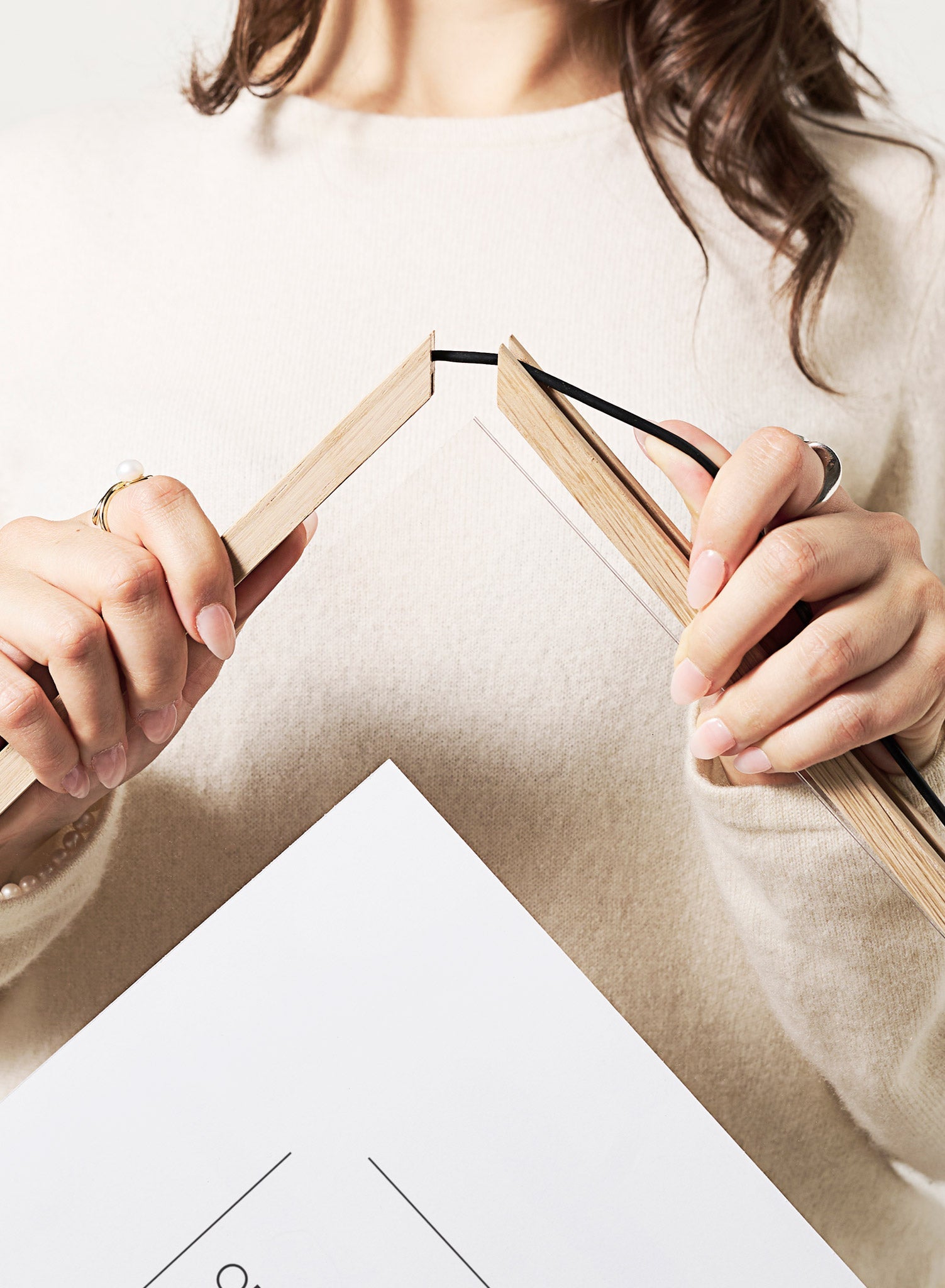 Our lightweight and FSC-certified Floating Frames made from solid oak are designed in Montreal and sourced sustainably. Posters and hanging accessories are not included. We recommend choosing a poster size that is equal to or smaller than 12x16. For illustration purposes, we use a 5x7 poster in an 8x10 Floating Frame.
