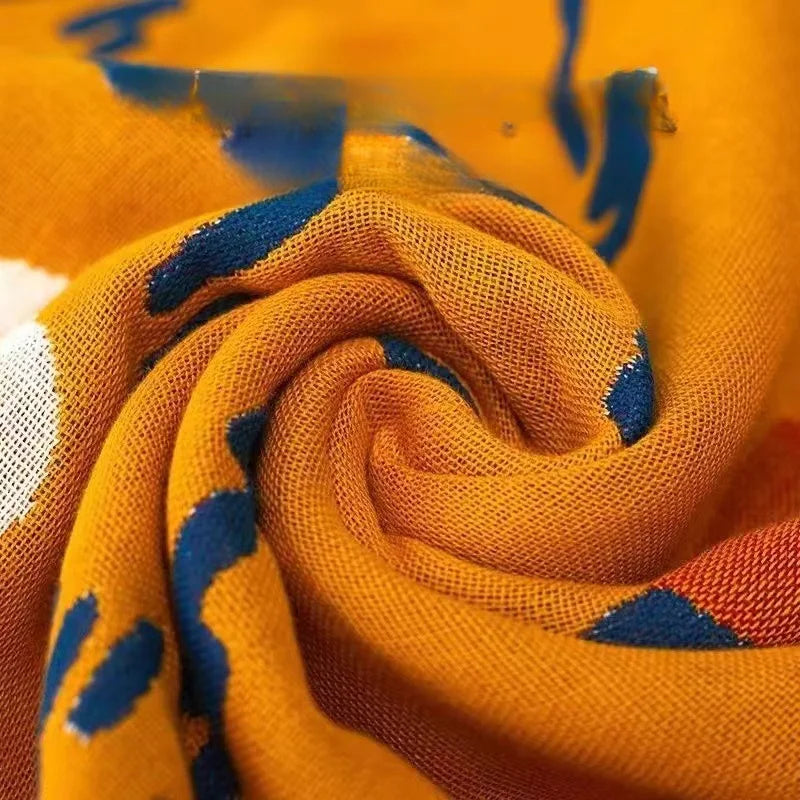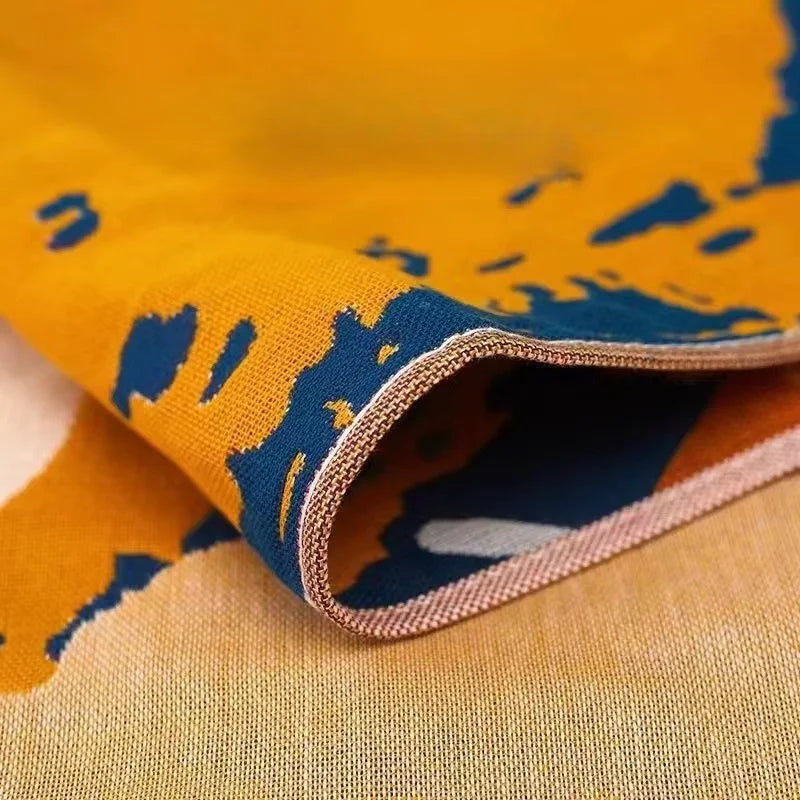 Immerse yourself in a captivating, retro ambiance with this lively floral throw showcasing large, daisy-like motifs in rich, bright hues. It’s an excellent addition for infusing a joyful Boho elegance into your environment, and the whimsical design of this throw adds a unique, artistic vibe to any setting. Perfect for cuddling under or layering on furniture, it serves as an adorable piece that combines warmth with a hint of nostalgia.