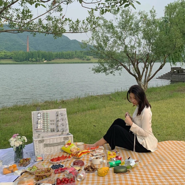 Rynx | FP1409 6mm Thickened Moisture-Proof Beach Mat Outdoor Camping Tent Mat Without Storage Bag, Size:150x200cm(Yellow White Grid)
