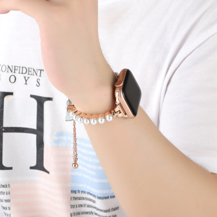 Rynx | For Apple Watch Series 7 41mm Beaded Bracelet Metal Watch Band (Rose Gold)