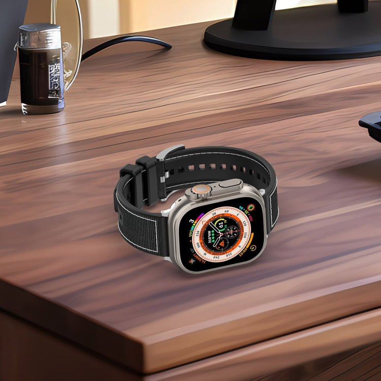 Rynx | For Apple Watch Series 7 45mm Official Buckle Hybrid Nylon Braided Silicone Watch Band (Gray)