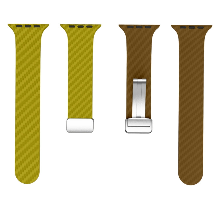 Rynx | For Apple Watch Series 9 45 mm Carbon Fiber Magnetic Silver Buckle Watch Band (Olive Brown)