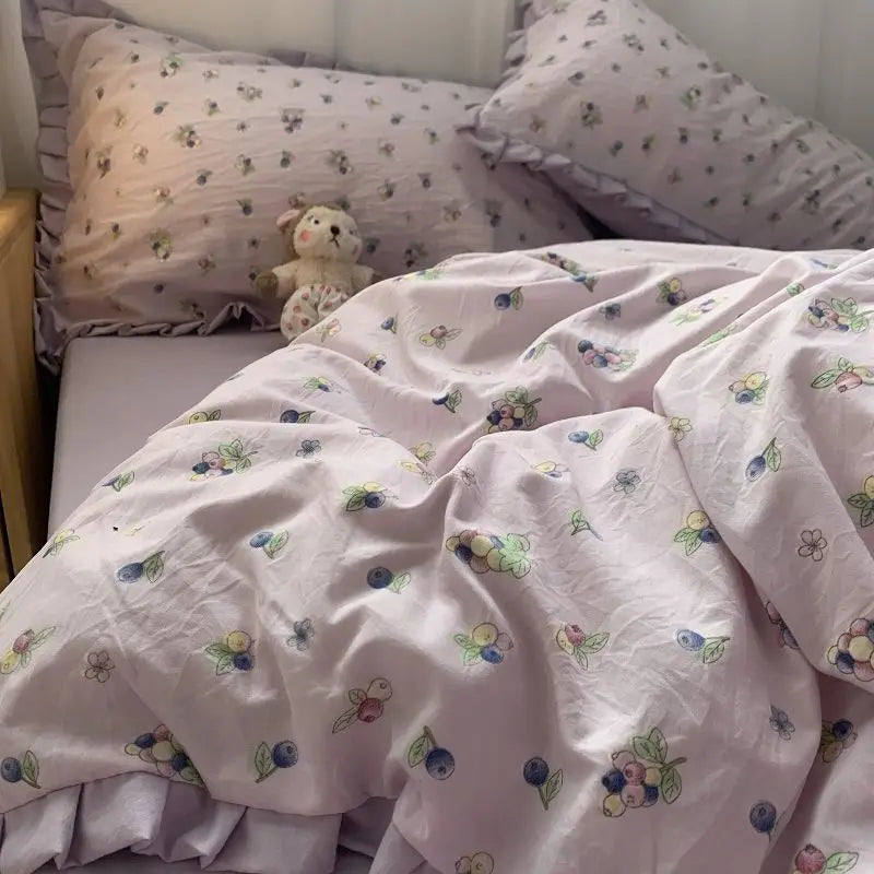 Rynx | French Style Bedding Set Pastel Colored Grape Double-layered Gauze Light Purple Wash Cotton Duvet Cover Bed Sheet Blanket