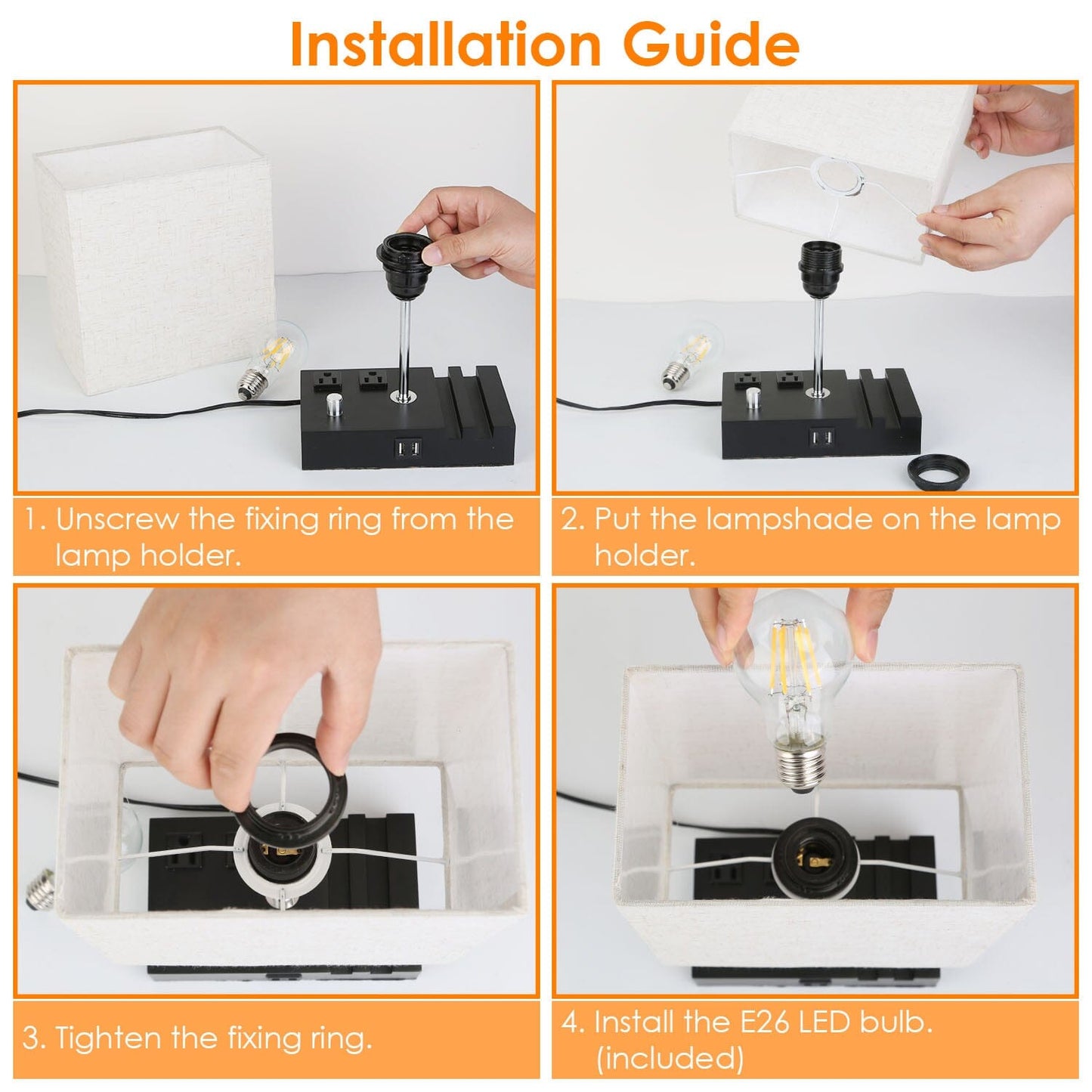 - E26 LED Bulb: This lamp comes with an E26 LED bulb that emits comforting warm light. With no flicker or glare, this soothing light helps make your bedroom inviting and establishes the right warm tone for reading and achieving a good night's sleep.