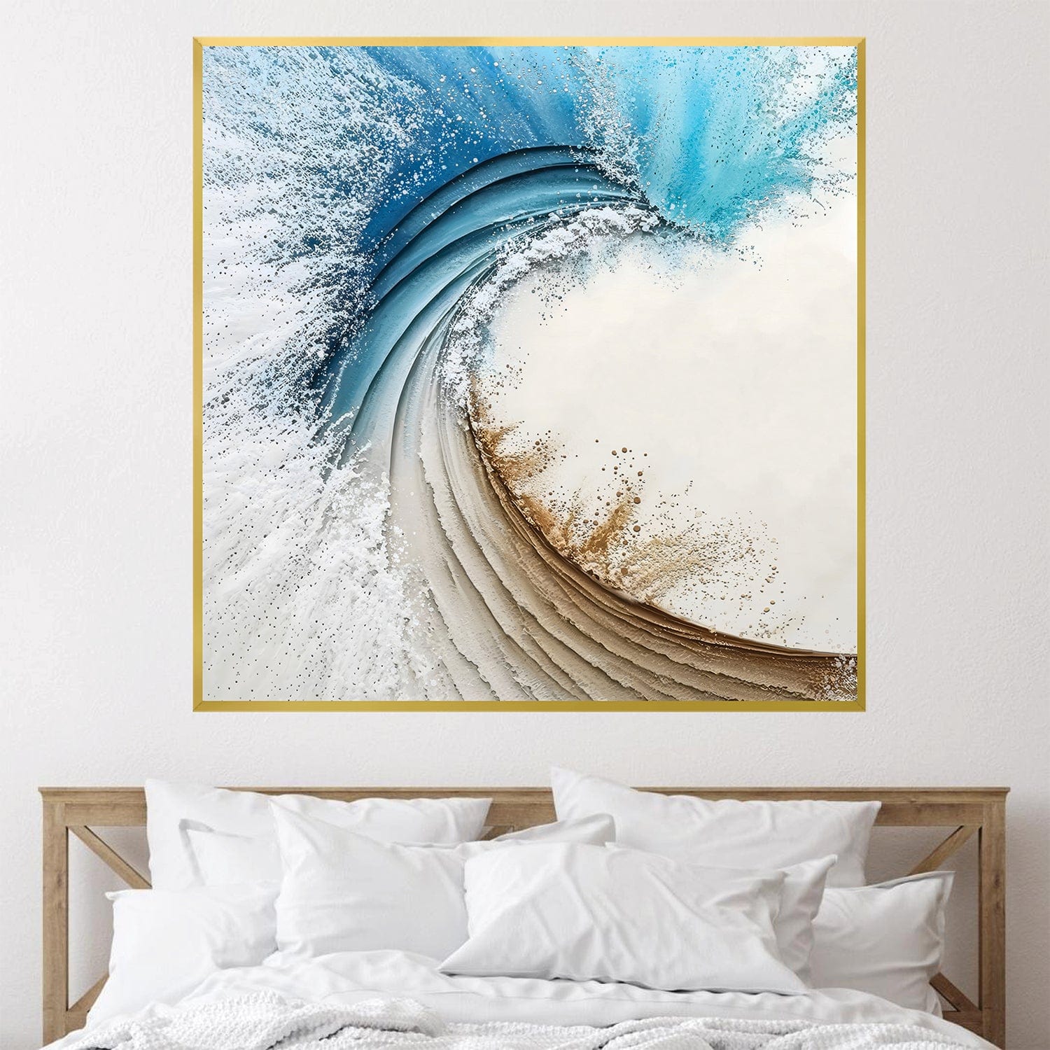 Discover the captivating allure of our "Fused Splash" canvas artwork for your wall. This stunning oil painting, adorned with a harmonious blend of blue, brown, and white hues, captures the essence of an impressive splash reminiscent of the colors of a sandy beach and the waves of the ocean. The title aptly conveys the fusion of natural elements, while the vibrant splatter effect mirrors the movement of waves gently breaking on a tranquil shore. The meticulous attention to detail creates a sensation of fluidity and depth, making it an exhilarating centerpiece. Enhance your space with this striking piece of art, available both as canvas wall art and framed wall art.