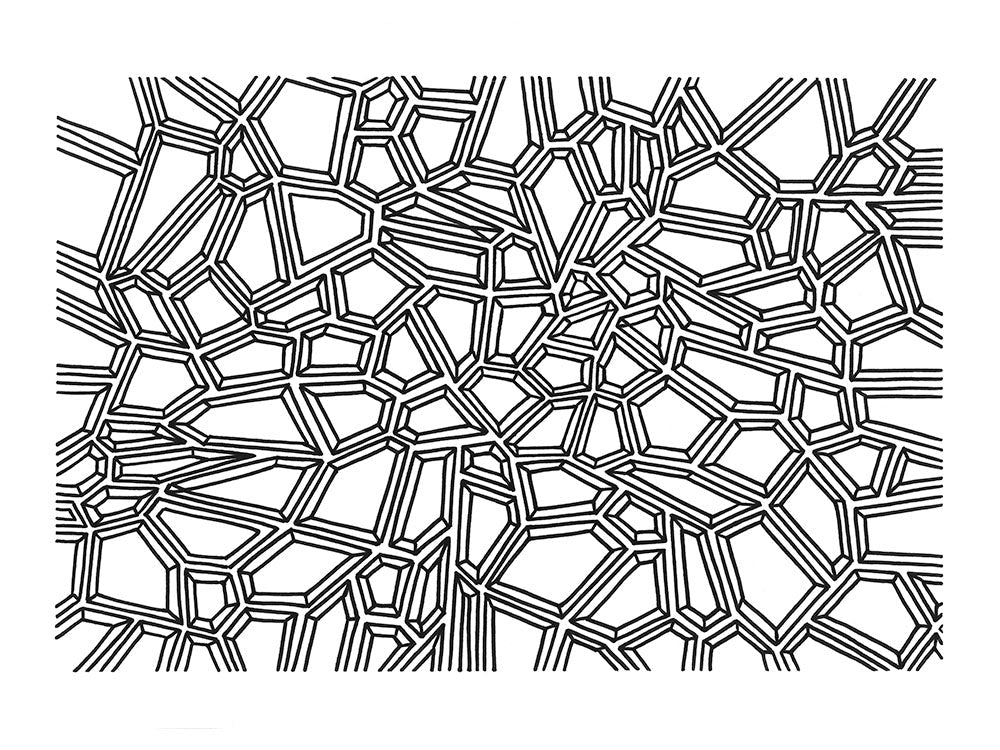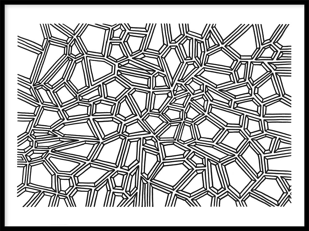 A black and white print featuring a design-driven pattern inspired by gems.