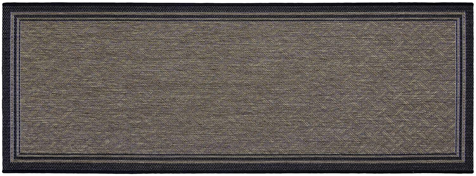 - One (1) Gertmenian Tropical Collection Outdoor Rug Patio Area Rug, 2x6 Runner, Nut Brown Black Border