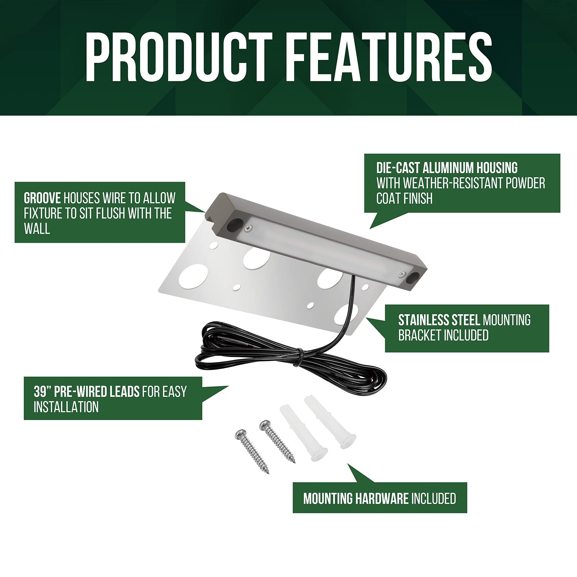 - ? Versatile installation: Comes with a sturdy stainless steel mounting bracket and pre-wired 39-inch SPT-1 18AWG wires for easy setup.